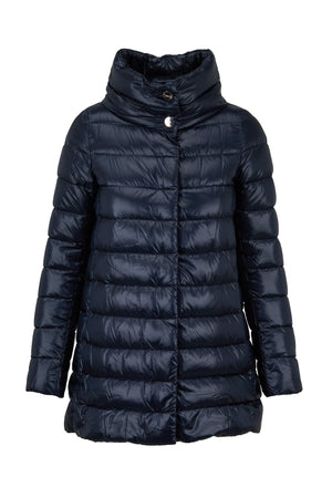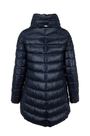 Elevate your outerwear collection with this refined A-line coat, crafted from premium polyamide with a luxurious 90% goose down and 10% feather filling for exceptional warmth without bulk. The sophisticated silhouette features a striking hi-lo hem that adds contemporary flair, while the wide funnel neck provides elegant coverage. Practical details include concealed snap front closure and two hidden zip seam pockets for seamless styling. Hand wash to preserve its quality. Imported.