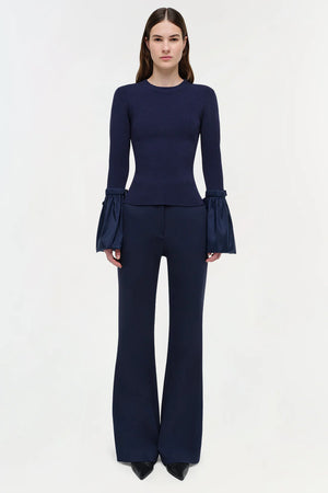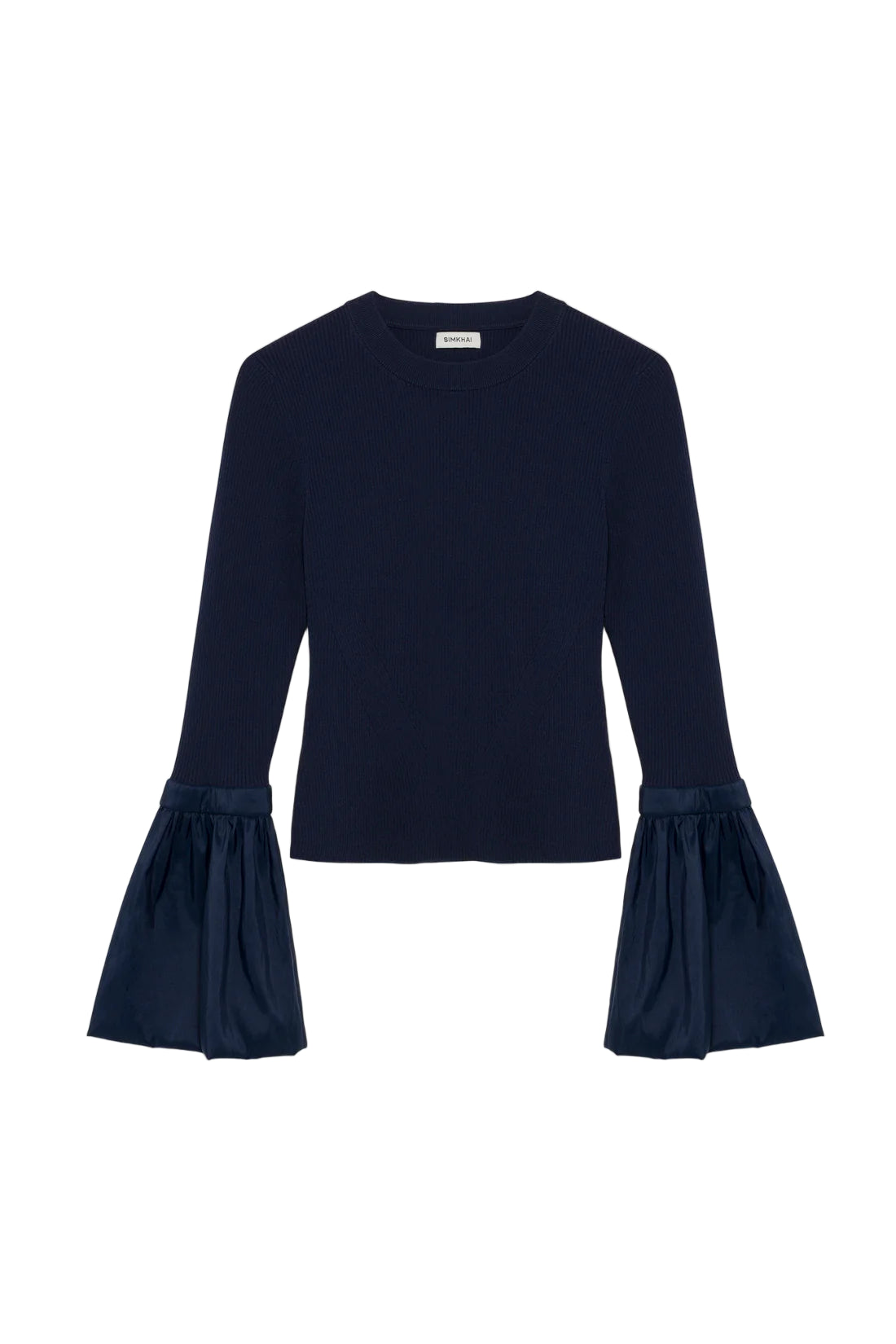 Discover refined elegance with the Agata L/S Top, where tailored knit precision meets architectural taffeta sleeves. Voluminous gathered cuffs adorned with delicate bows create a striking silhouette that balances structure with movement. This sophisticated piece transforms everyday styling through masterful contrast and proportion, delivering modern luxury with every wear.