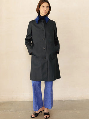 The Alaine Coat combines timeless elegance with refined craftsmanship. Tailored from a luxurious blend of 90% cotton and 10% polyurethane, this Italian-made piece offers both structure and subtle stretch for all-day comfort. The sophisticated silhouette features a center back length of 37½" with 32¾" sleeves, designed to drape beautifully on the frame. Professional dry cleaning is recommended to preserve the coat's impeccable finish and longevity. Order your usual size for the perfect fit.