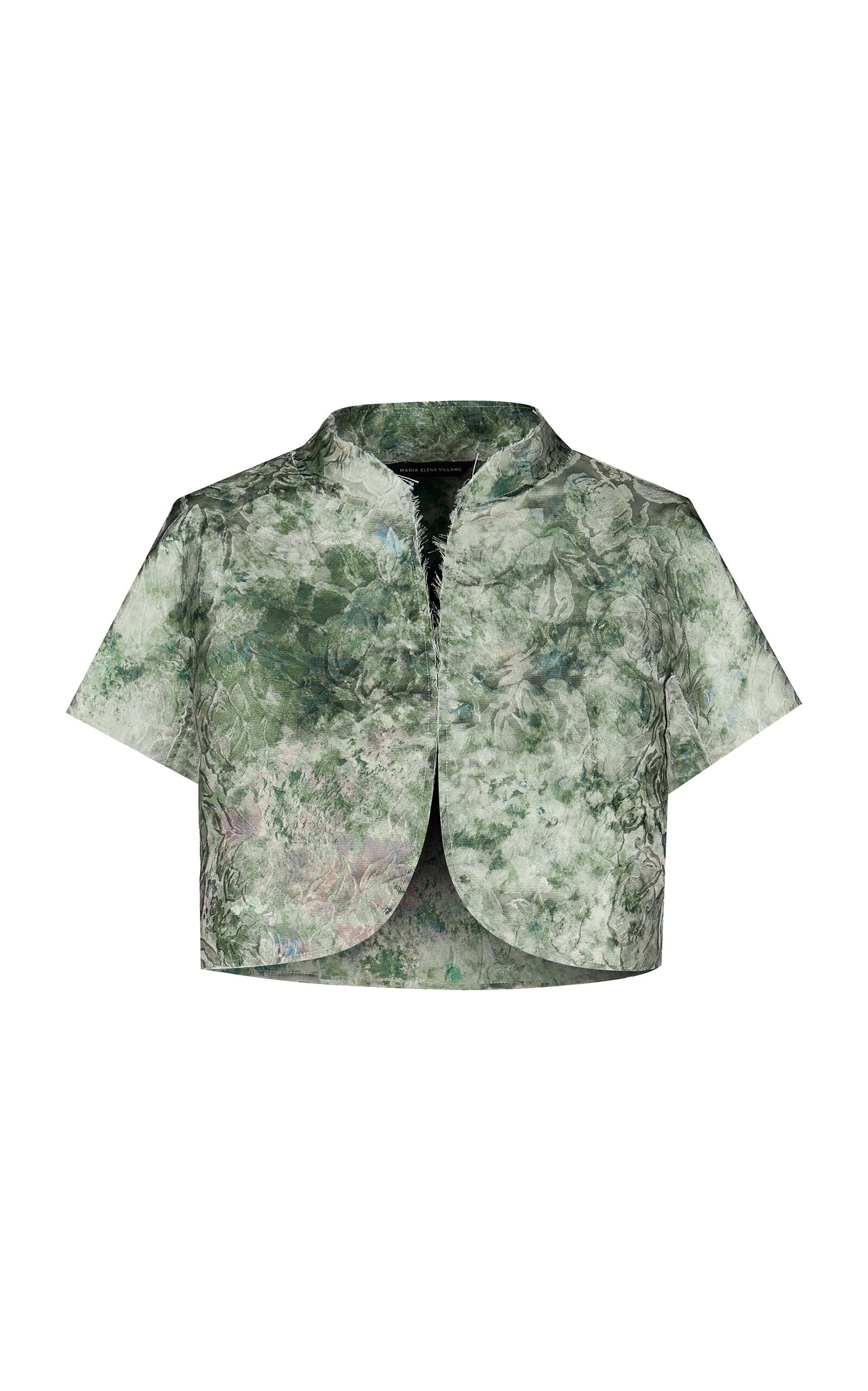 The Alamo Mini Jacket showcases an artistic watercolor design that captures the essence of contemporary elegance. This cropped silhouette offers a modern take on classic tailoring, perfect for layering over dresses or pairing with high-waisted bottoms. The hand-painted aesthetic adds a distinctive, gallery-worthy quality to your everyday wardrobe. Crafted with refined attention to detail, this piece transitions seamlessly from casual outings to more polished occasions, making it an essential addition for those who appreciate wearable art.