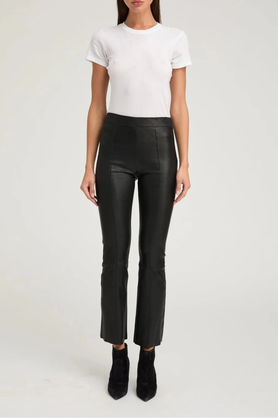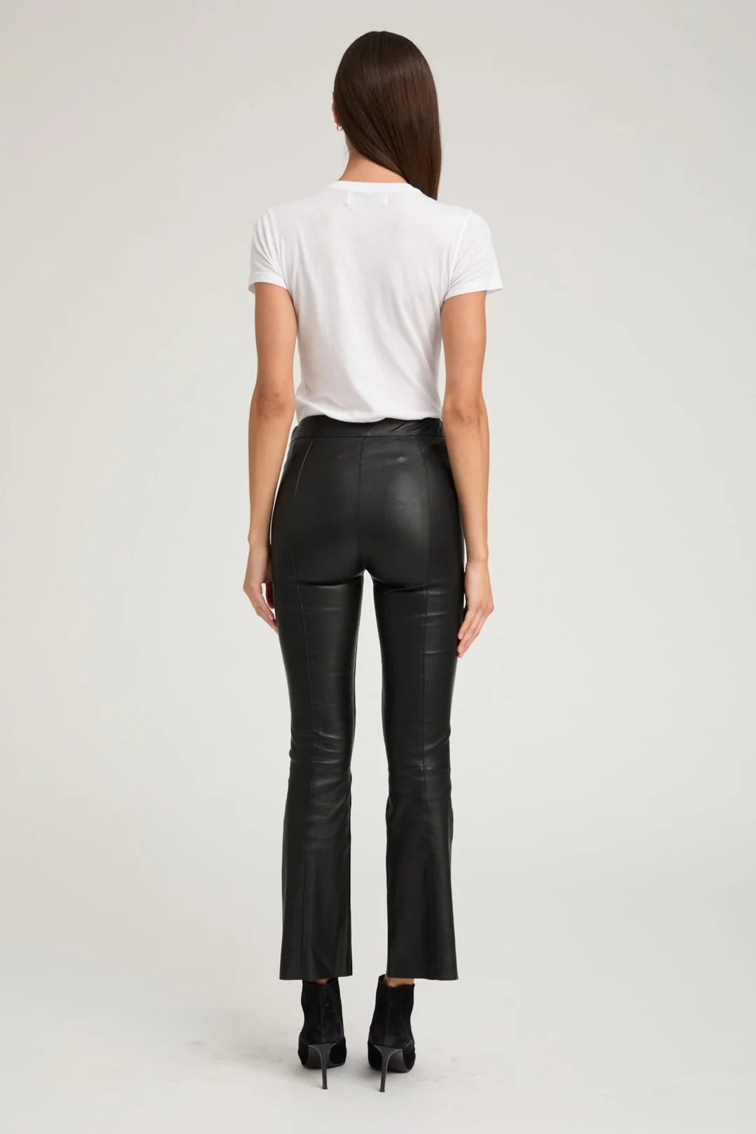 Made in our signature stretchy plongé leather, our Ankle Flare Pants with Princess Seams are buttery soft and feel like a second-skin. These pants feature a high rise and slim fit that flare subtly at the ankle, with princess seams down the front and back for an ultra slimming and elongated look. Wear them with loafers and a cashmere sweater, or dress them up with heels.