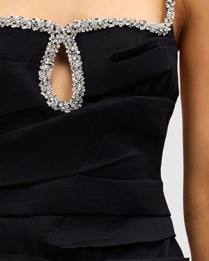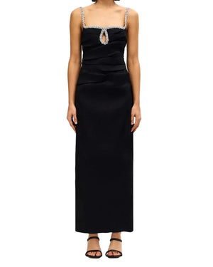 Acler's Astonhall Maxi Dress exemplifies contemporary elegance through its sculptural silhouette and meticulous craftsmanship. The fitted bodice is adorned with delicate rhinestone detailing at the neckline, adding a touch of refined glamour. Designed for the discerning woman, this maxi dress transitions effortlessly from sophisticated evening occasions to elevated daytime moments, embodying the brand's signature blend of modern design and timeless femininity.