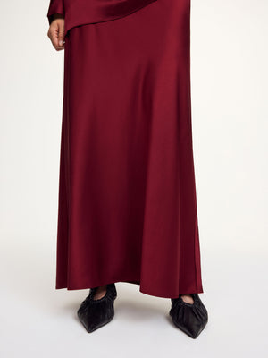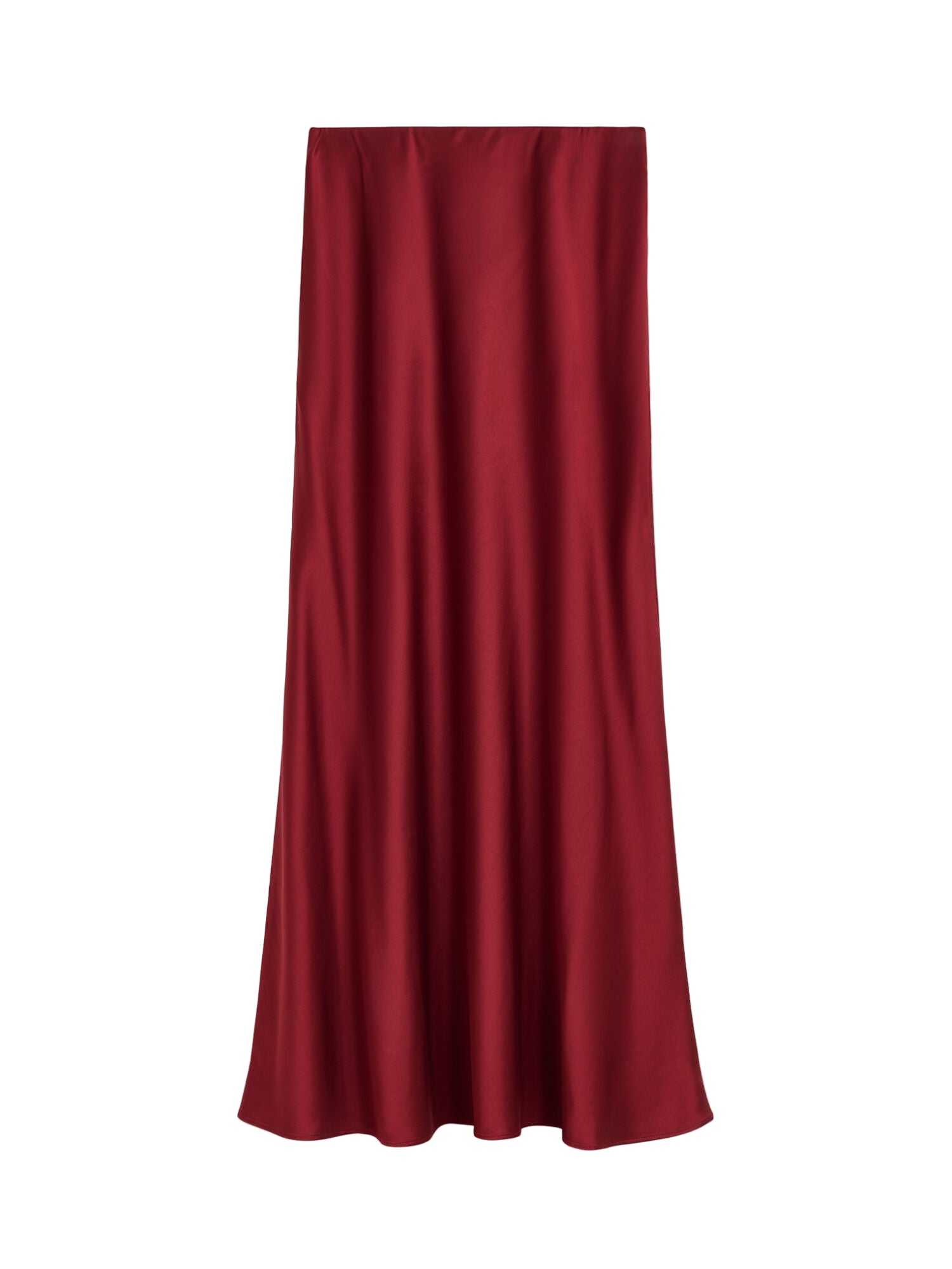 The Barbara skirt epitomizes understated luxury with its flowing maxi silhouette and lustrous satin finish. Crafted from Eastman Naia™—a responsibly sourced cellulosic fiber—this piece combines sustainability with supreme softness and comfort. The high-waisted design features an elastic waistband and graceful flared cut that moves beautifully with every step. Quick-drying and biodegradable, it's an elegant choice for the conscientious dresser seeking timeless style without compromise.