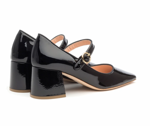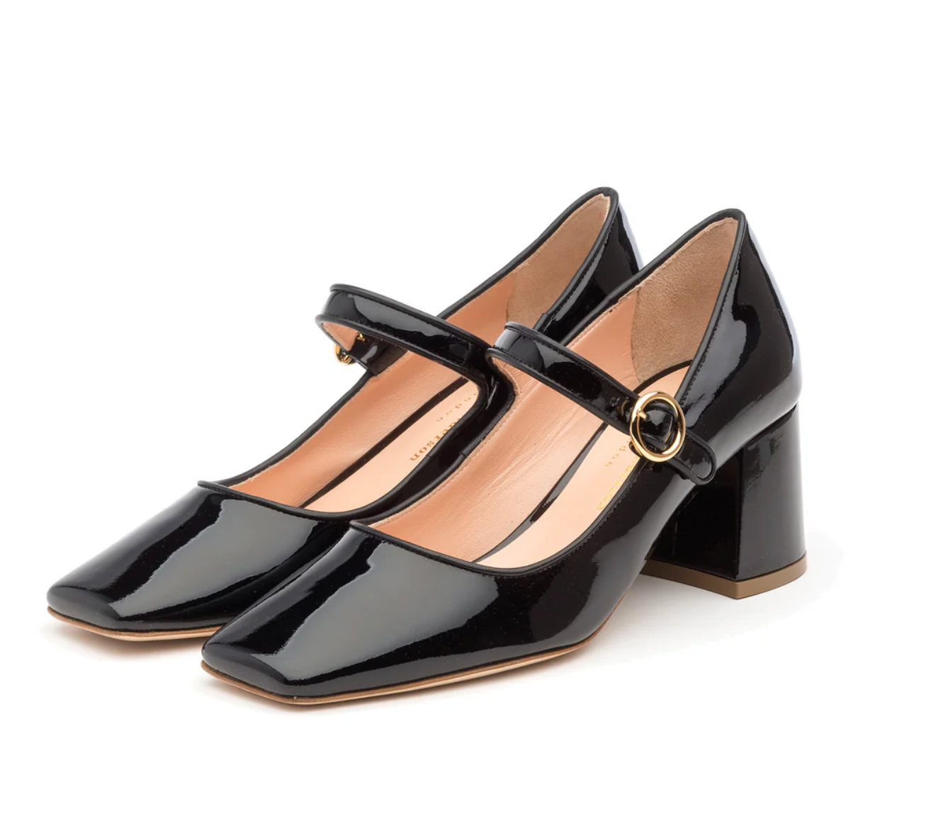 Mary Janes have long been a signature in Rupert Sanderson’s lineup, now refreshed with a 60mm flared heel and a stylish square toe for a sophisticated vintage vibe. Crafted from nappa bordo francese leather that contrasts elegantly with the patent finish, they feature a round brass adjustable buckle. Expertly handmade in Italy.