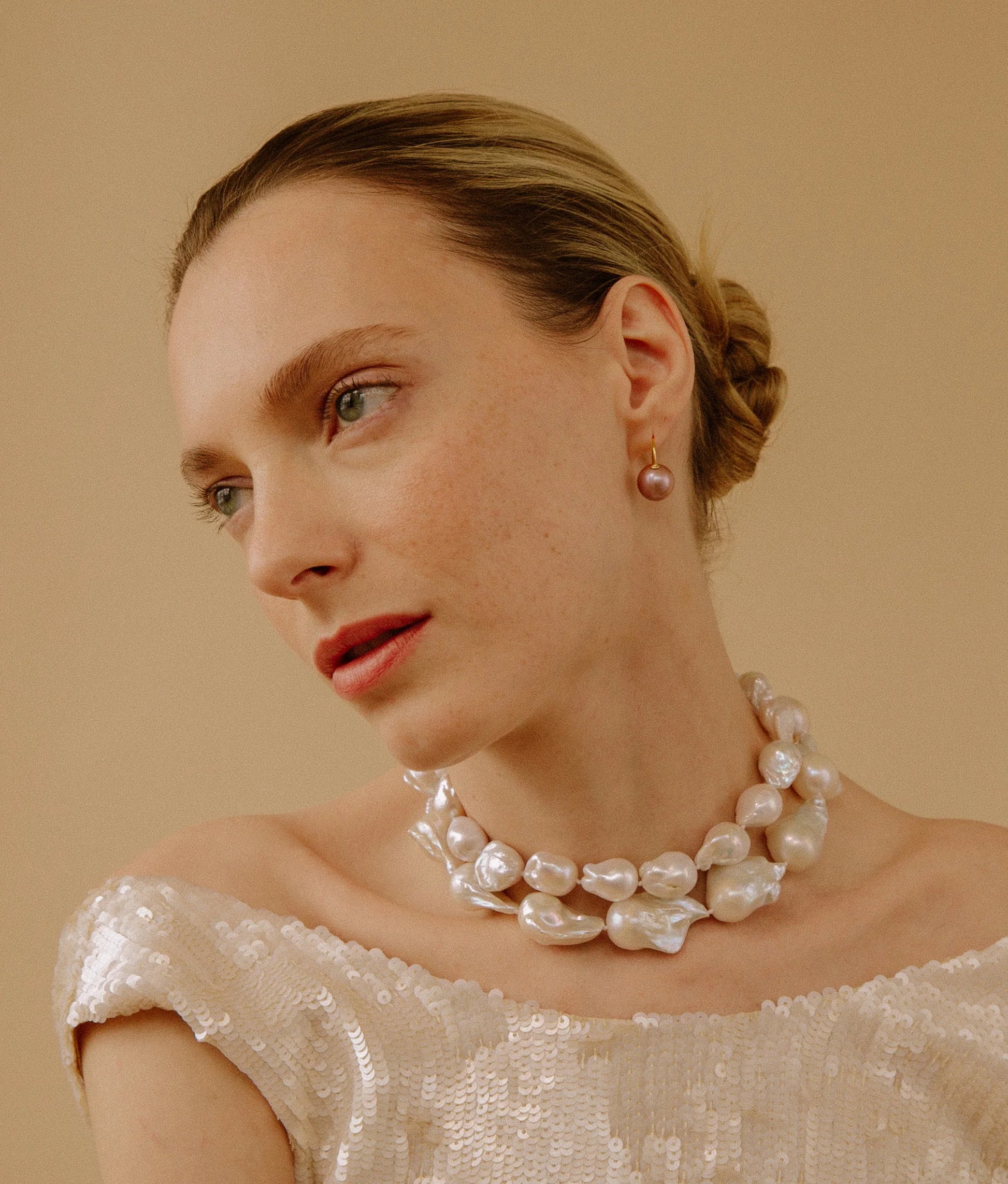 Elevate your everyday elegance and special moments with the Claude Necklace. Featuring unique white baroque pearls strung on hand-knotted pale pink silk thread, this single-strand design is finished with a gold-plated brass hook closure. Each necklace showcases the natural variations in pearl shape, ensuring a one-of-a-kind accessory that effortlessly blends timeless sophistication with subtle individuality.