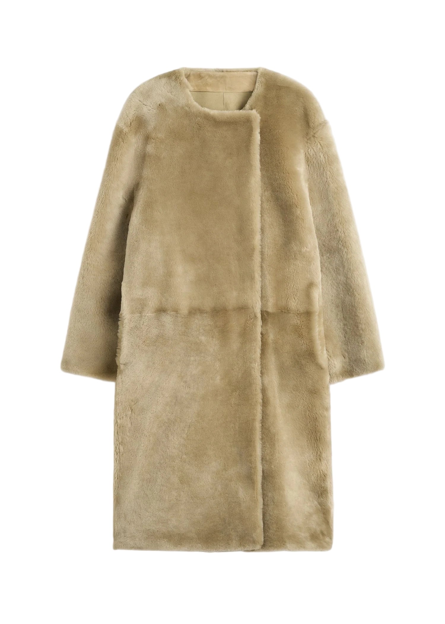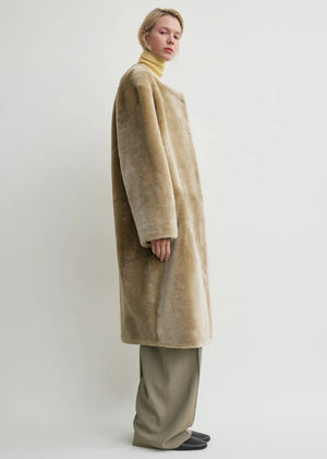 Collarless Shearling Coat