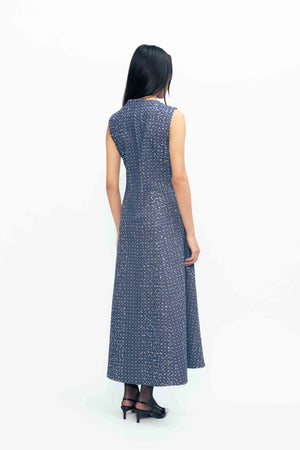 The Cosmic Dress captures effortless elegance with its flattering fit-and-flare silhouette and thoughtfully placed sequin detailing. The soft grey-blue hue provides a sophisticated foundation that transitions seamlessly from day to evening, while delicate embellishments add visual interest without overwhelming the design. Cinched at the waist to enhance your natural shape, the flowing midi length moves gracefully with you. Whether you're dressing for a special occasion or elevating your everyday style, this dress strikes the perfect balance between polished refinement and comfortable ease.
