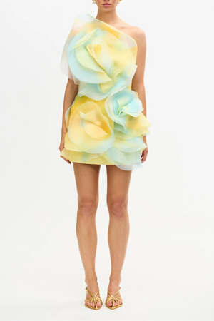 The Cotwall Mini Dress in Lemon Mist is a striking statement piece that merges contemporary design with timeless sophistication. Featuring hand-adorned printed organza petals that create dimensional depth, this architectural mini showcases sculptural elegance against a refined bonded silhouette. Fully lined for a polished, opaque finish, it's crafted for those who command attention at every occasion—from intimate gatherings to grand celebrations. A modern study in artistry that transforms any event into your moment to shine.