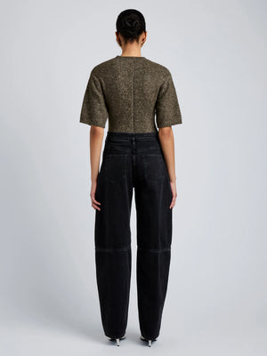 The Dana Sweater from Proenza Schouler White Label combines refined minimalism with thoughtful tailoring. This piece features a classic crew neckline and short sleeves, while a cinched waist defines the silhouette for a flattering, intentional fit. The slim cut and straight hem create an elegant line that transitions seamlessly from casual to polished occasions. A wardrobe essential that rewards discerning taste.