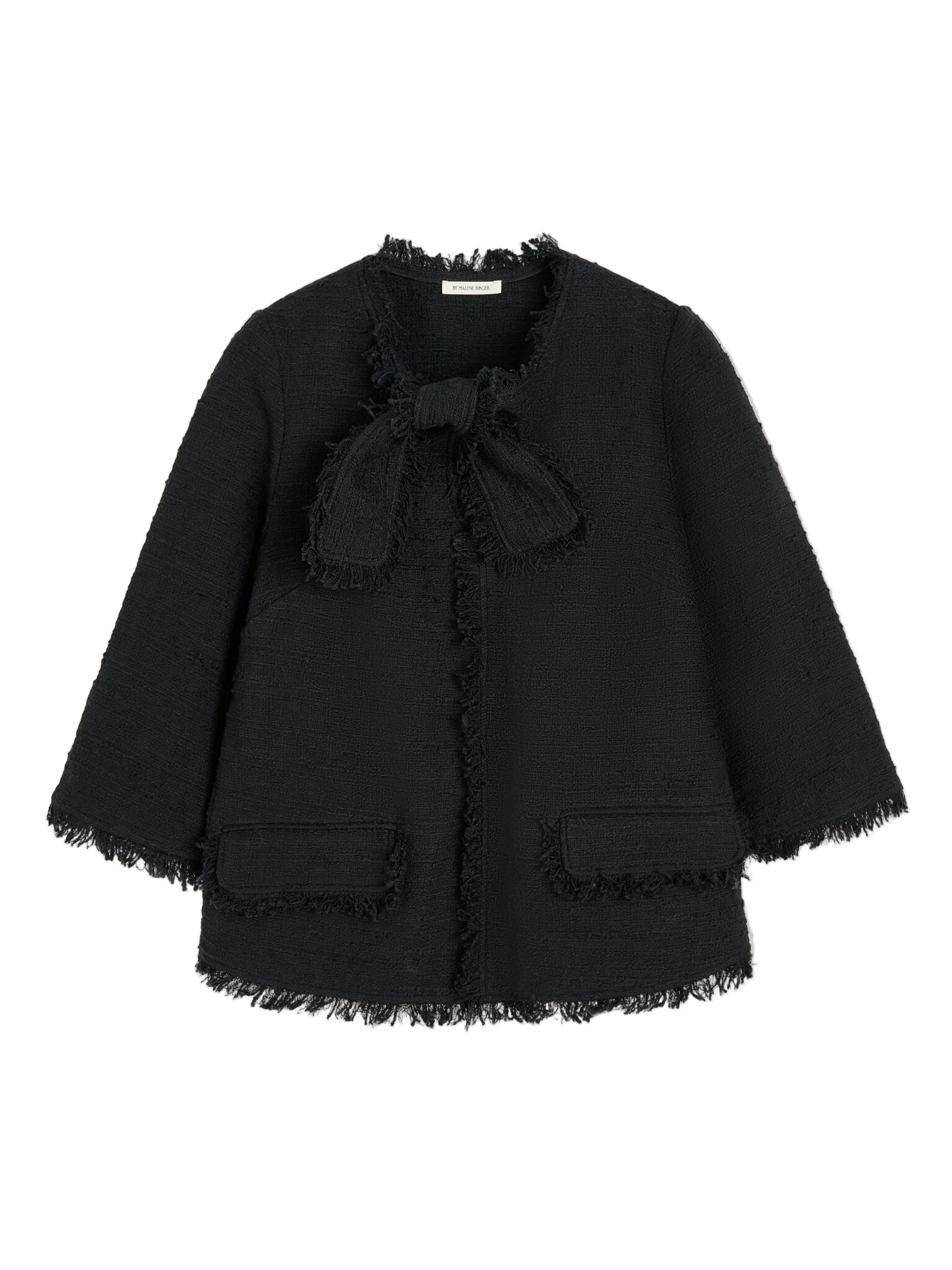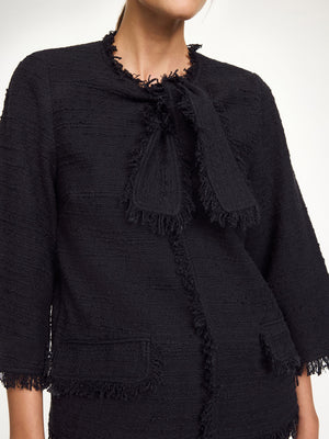 The Diana Top by By Malene Birger blends timeless elegance with subtle texture, crafted from a tactile cotton blend. Its refined silhouette features a V-neck with delicate ties, faux front pockets, and fringed hems that add a touch of modern femininity. Perfectly pairing with the Mafaldana Boucle trousers, this blouse elevates any sophisticated wardrobe with effortless style.