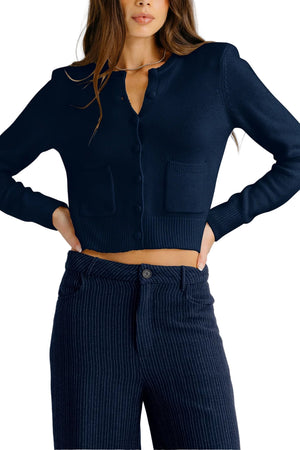 Elevate your wardrobe with the Emilia Shoulder Pad Cardigan, a refined piece crafted from luxurious 100% cashmere. This cropped silhouette features structured shoulders that create a polished, contemporary line, while ribbed trim adds textural sophistication. Practical patch pockets offer functional elegance. Perfect for layering over dresses or pairing with tailored trousers, this investment piece delivers timeless style and unparalleled softness.