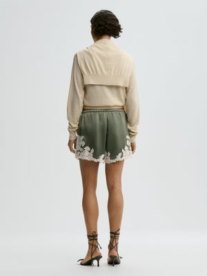 Elevate your warm-weather style with the Eri Short, a romantic essential featuring luxurious satin fabric and delicate vintage-inspired lace trims. Perfect for spring and summer, these shorts bring effortless elegance to any outfit. Style them with a minimalist tee like the Alicia T-shirt for understated sophistication, or pair with the matching Madeleine top for a coordinated, polished look. A versatile piece that transitions seamlessly from day to evening.