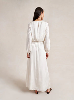 Introducing the Fleur Skirt, the versatile wardrobe essential that transcends seasons. Crafted from luxurious satin with a graceful drape, this pull-on maxi features a high slit that moves effortlessly with you from morning meetings to evening occasions. The fluid silhouette adapts beautifully to any season—style it with sandals in summer or boots in winter. Pair with the Fleur Top for a coordinated look, or layer with the long sleeve version for added coverage. A timeless piece designed to become your go-to for year-round elegance.