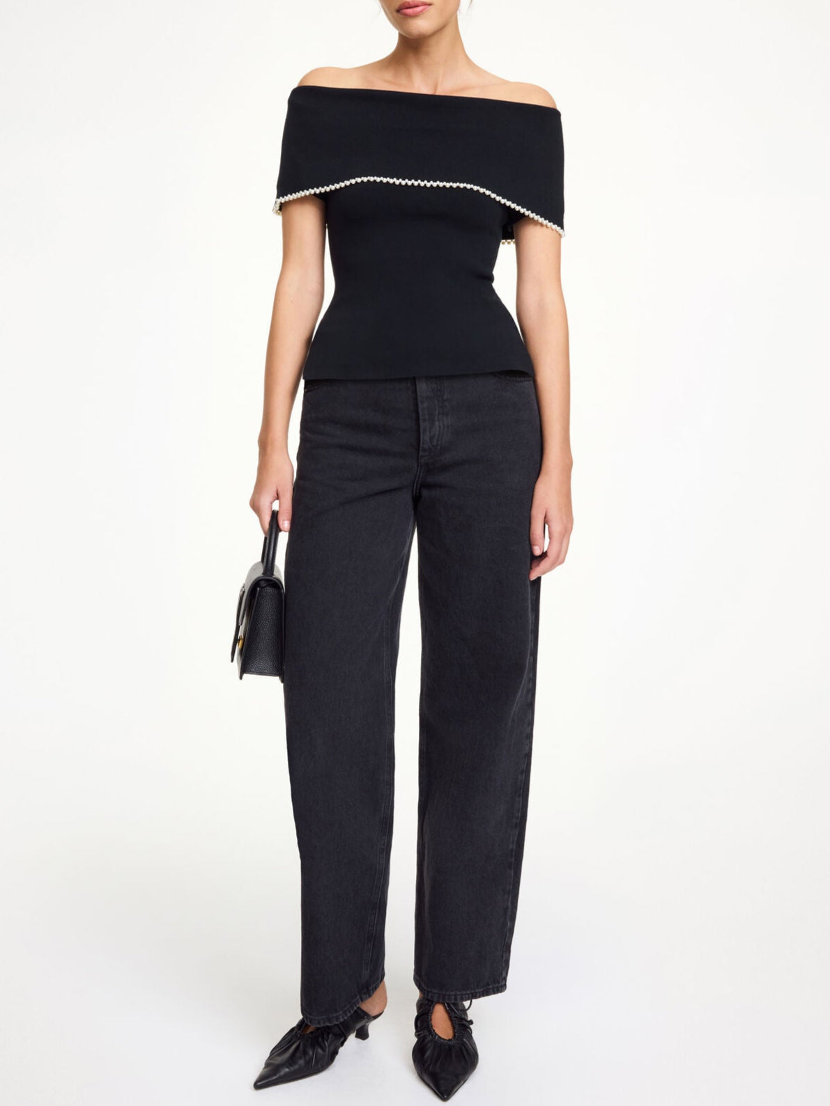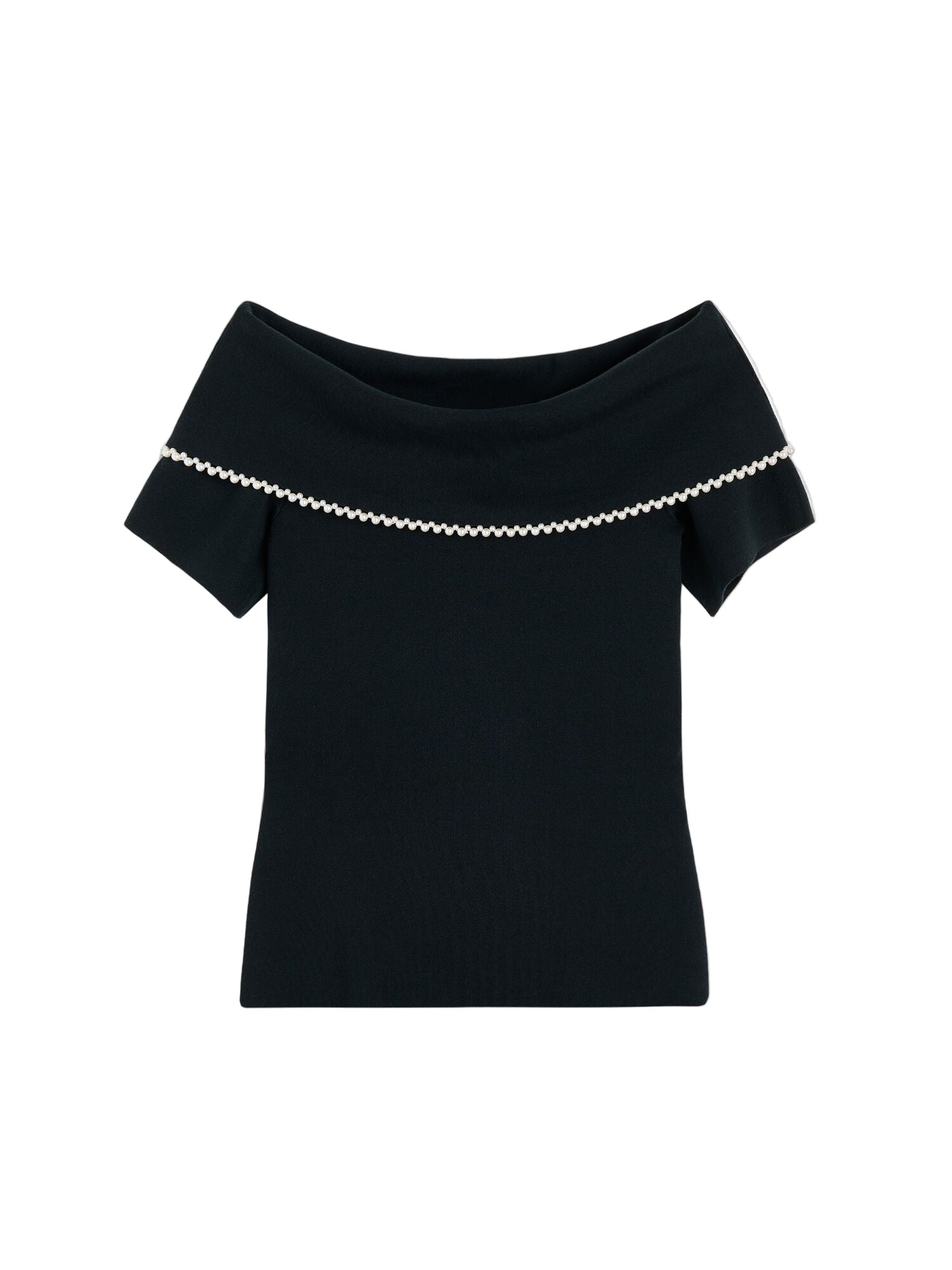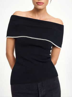 The Hetha top epitomizes the refined femininity characteristic of By Malene Birger. Featuring a sleek off-shoulder design and a delicate faux pearl trim, it effortlessly enhances your wardrobe throughout the seasons. Pair it with voluminous bottoms to balance its slim profile. - Slim fit - Model is 178 cm tall wearing size S - Off-shoulder neckline - Stretch fabric - Faux pearl accents - Short sleeves - Made with TENCEL™ Lyocell fibers, a Lenzing AG trademark