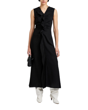 The Jaya Dress merges contemporary design with refined sophistication. Its graceful midi length is elevated by an eye-catching ruffle cascade down the back, creating dynamic movement and dimension. Versatile enough for polished everyday moments or memorable occasions, this piece seamlessly transitions from morning to evening, making it an essential addition to any discerning wardrobe.