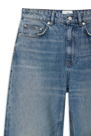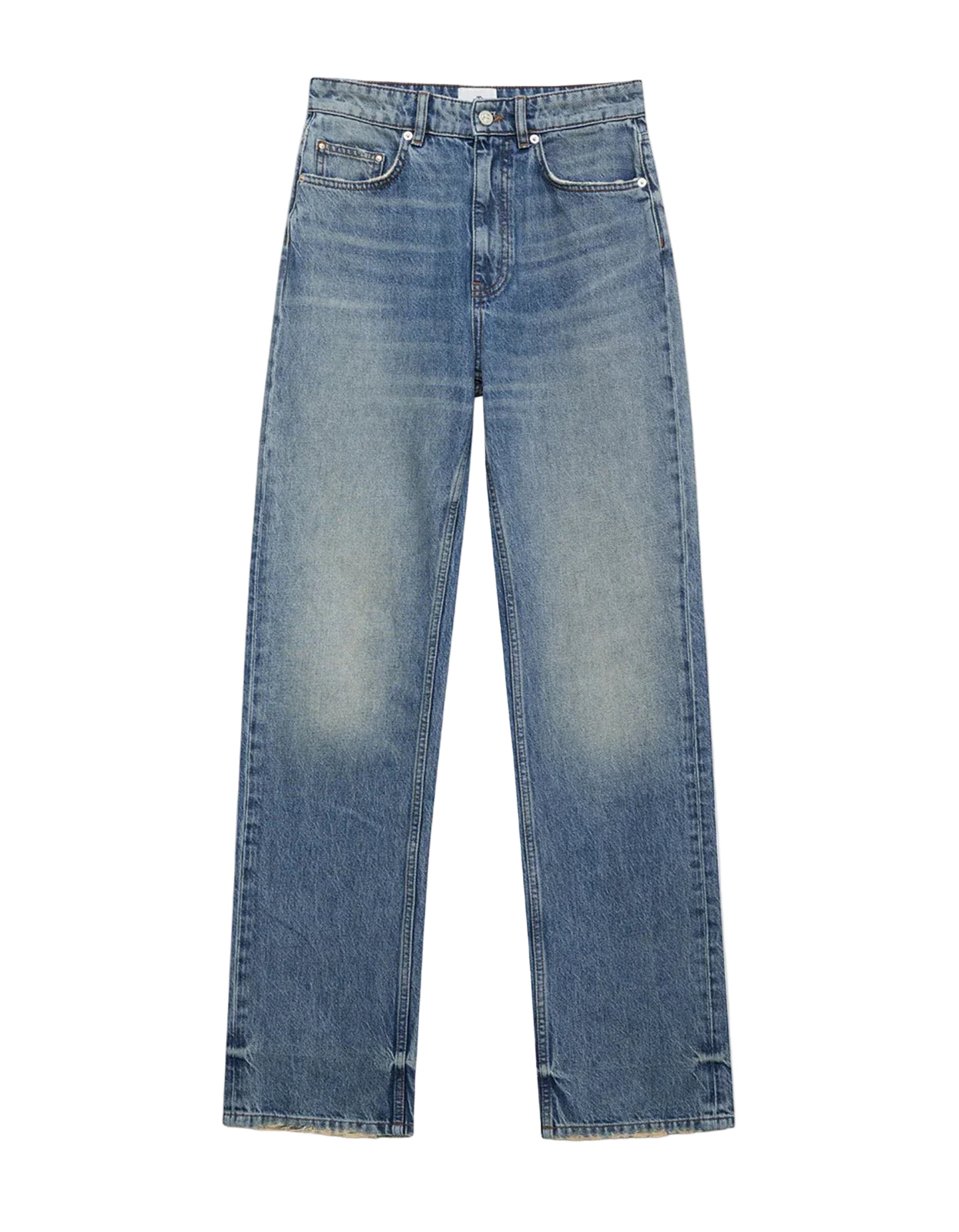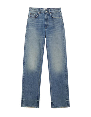 These women's Katherine Jeans feature a refined, timeless silhouette in a shadow blue wash. With a high-rise fit, straight leg, and full-length inseam, they offer both comfort and elegance. The button-fly closure and clean-edge hem with subtle distressing add understated character, making them versatile enough to complement casual or tailored outfits effortlessly.