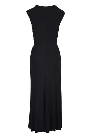 The Kimmy Sleeveless Midi Dress in Black embodies sophisticated simplicity with its sleek silhouette and elegantly gathered waist. This versatile midi effortlessly elevates your look, seamlessly transitioning from graceful daytime refinement to polished evening allure. A timeless addition to any wardrobe, it celebrates understated elegance with every wear.