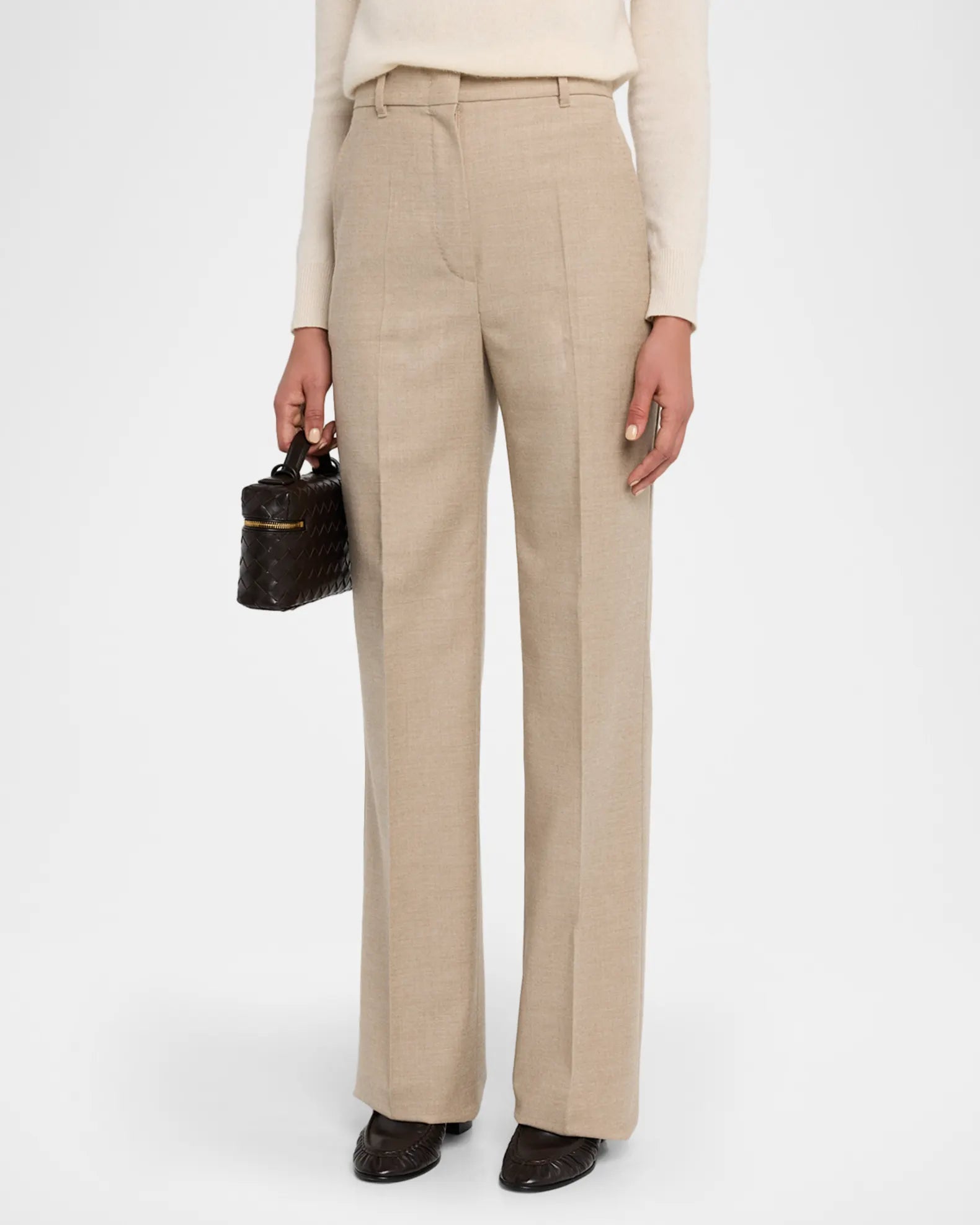 Indulge in the luxurious feel of the Max Mara "Lambro" pants. Tailored from soft flannel, these pants offer a clean, timeless look that exudes sophistication. With a high-cut waist and straight legs with a pressed center crease, these pants provide a masculine profile fit for any occasion. Complete with side slant pockets and a clean back, these pants offer versatility and elegance in one.