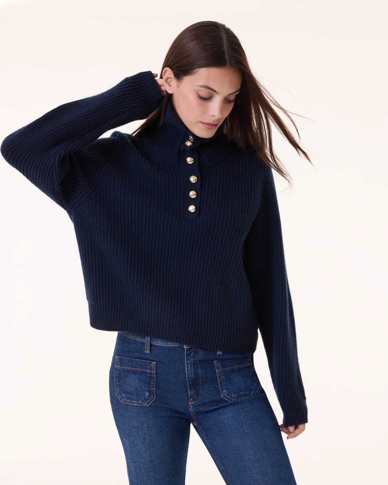 The Latoya turtleneck sweater epitomizes refined elegance with its luxurious 100% cashmere construction and sophisticated dark navy hue. Crafted with six-thread precision, this straight-cut silhouette drapes with understated grace, offering timeless versatility for the discerning wardrobe. The sumptuous cashmere delivers exceptional softness and warmth, while the classic turtleneck design provides both comfort and polished style. An investment piece that transcends seasons and trends.