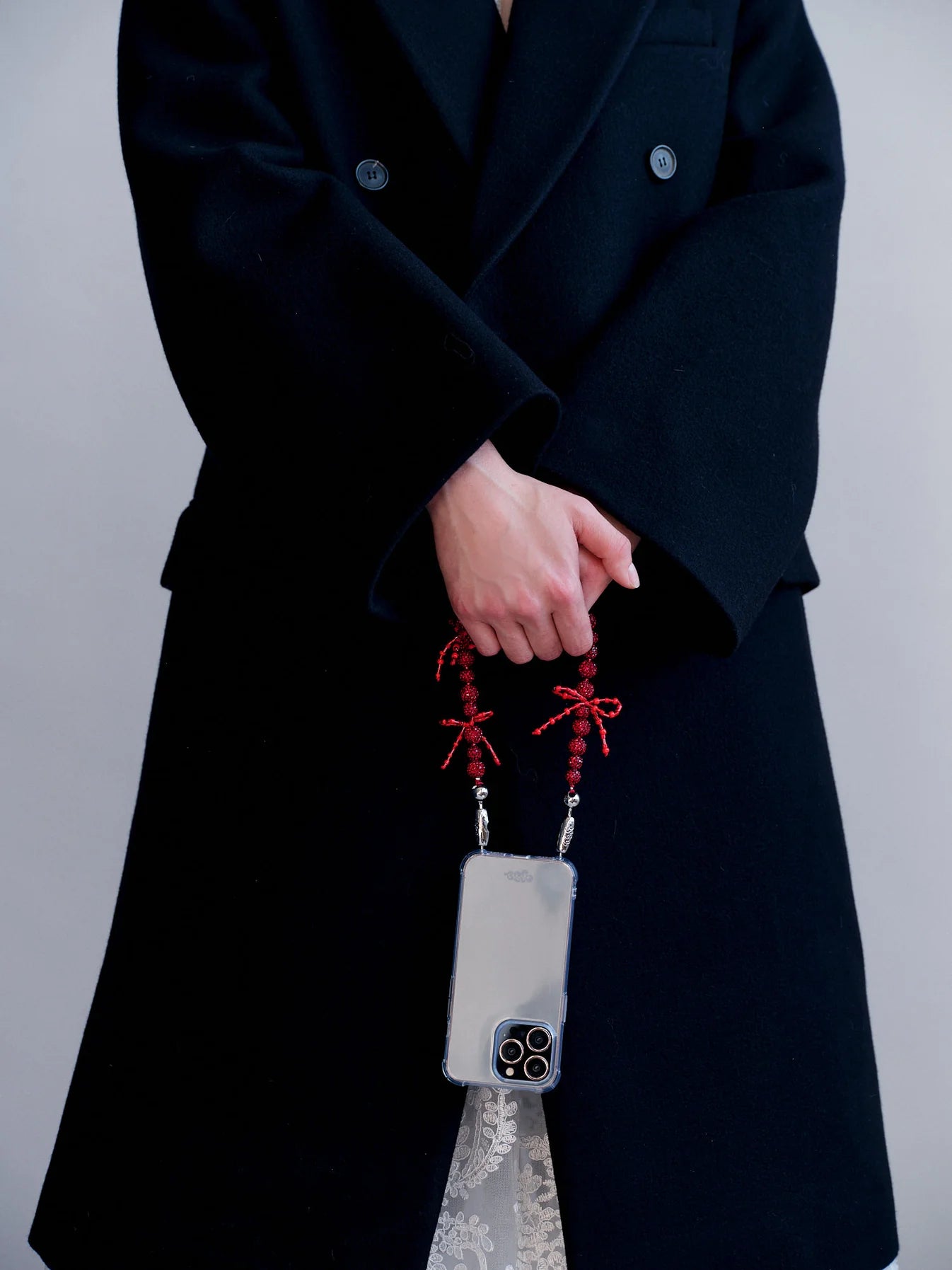 Ossa New York Iphone chain. Pave Rhinestone Beads with Seed Bead Bow Accents.