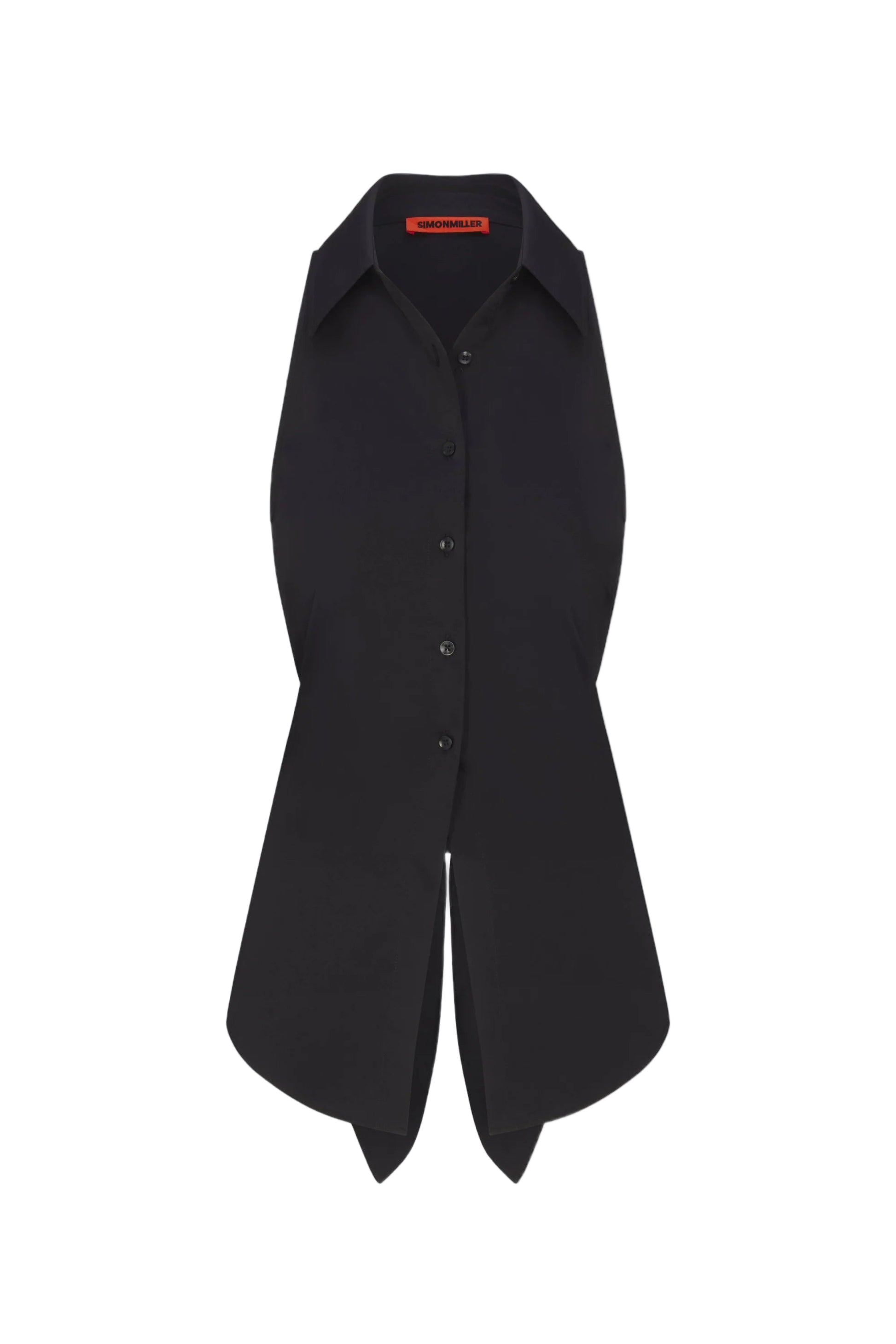 The Loch sleeveless button-up combines effortless elegance with practical versatility. Crafted from stretch cotton poplin, this sophisticated piece features a striking cut-out back and adjustable tie closure that adapts to your frame. Transition seamlessly from polished workwear to weekend styling. The premium blend of cotton, nylon, and spandex ensures comfort and durability, while the imported construction reflects quality craftsmanship. Dry clean for optimal care.