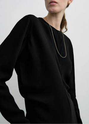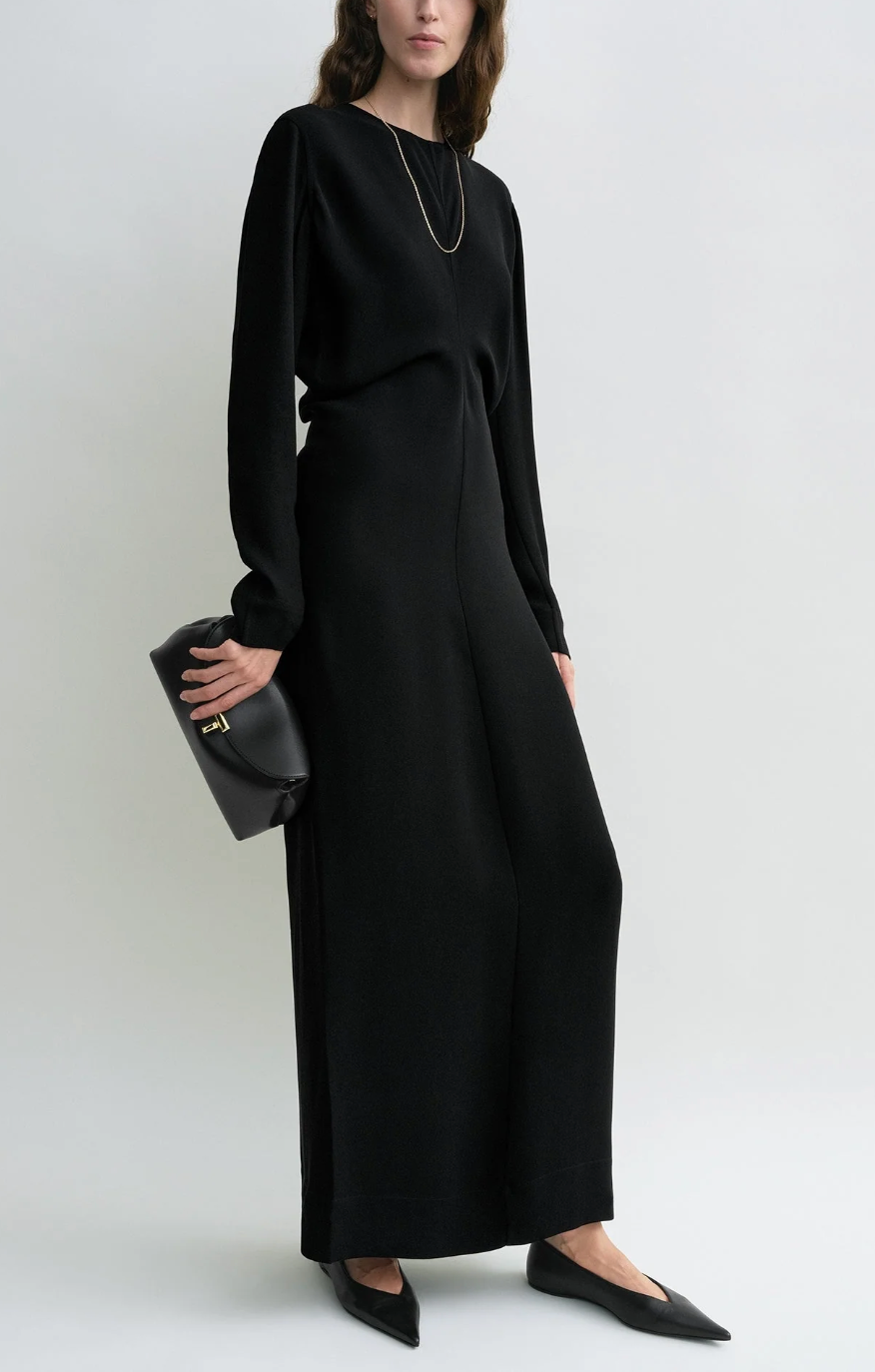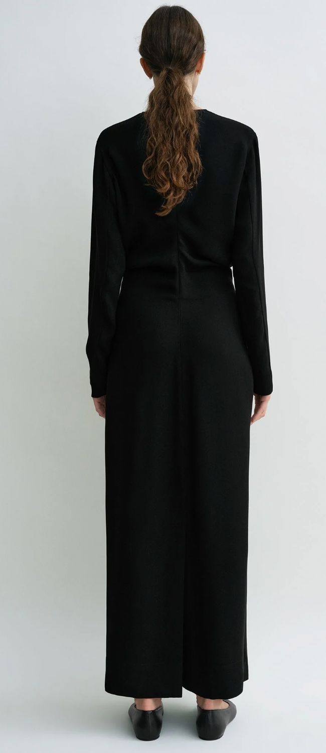 Designer’s note: “The slouch waist has been a favorite TOTEME silhouette for some time and we revisit it in the Garderob curation as part of this easy evening dress. It's made from fluid matte cady that drapes effortlessly over the midriff and is framed with slim long sleeves and an ankle-grazing hem.”