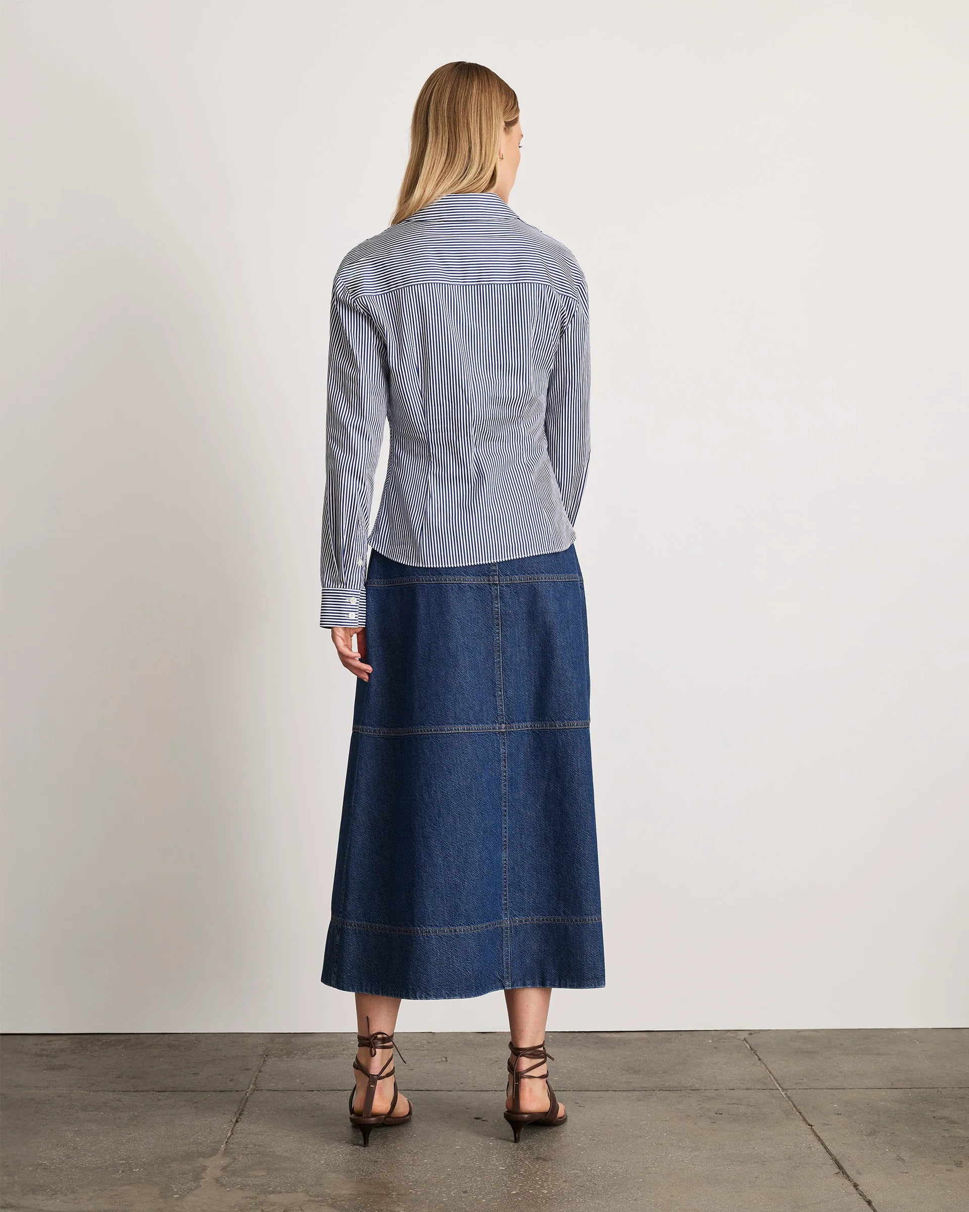Elevate your seasonal wardrobe with the LS Oakley Top, a sophisticated take on classic striped cotton shirting. This long-sleeve essential features a refined collared neckline and an unexpected twist that sets it apart from everyday basics. Crafted for versatility, it transitions seamlessly from casual gatherings to more polished occasions, making it an indispensable piece for the holiday season and beyond.