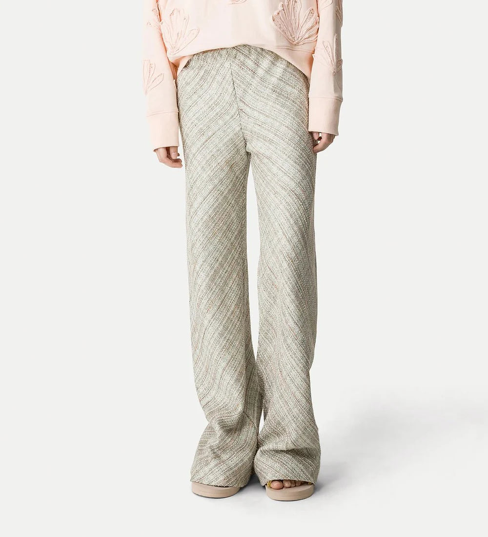 Discover effortless elegance with these stunning tweed pants featuring delicate silver threading and subtle sequin accents. The gently flared silhouette flatters every figure, while the elasticated waistband ensures all-day comfort. Versatile and refined, style them with a crisp shirt for understated sophistication or pair with an embellished top and heels for an unforgettable evening look.