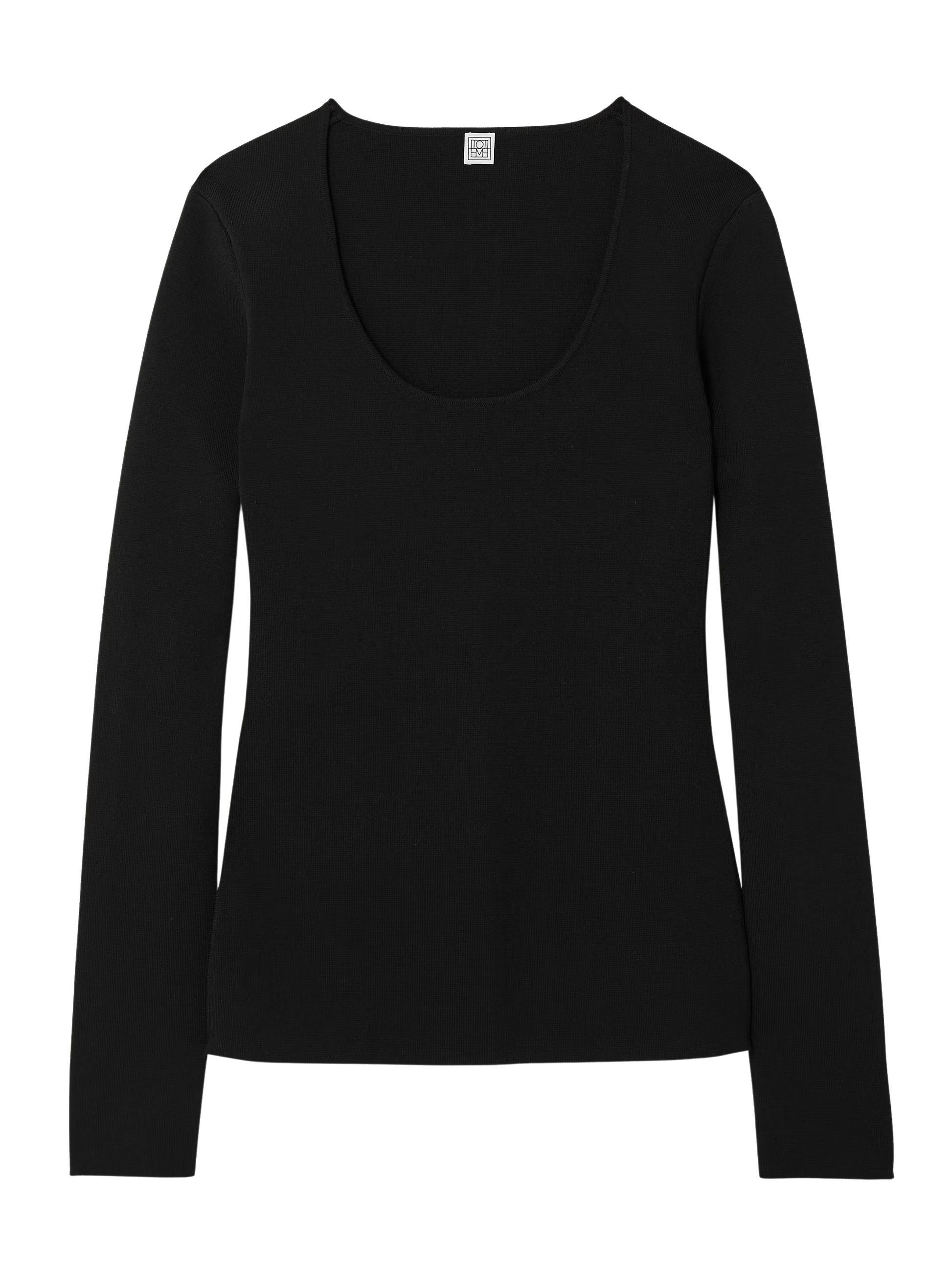 This Merino Knit Top embodies TOTEME's philosophy of timeless, versatile essentials. Crafted from stretch-knit fabric enriched with recycled fibers, it delivers both sustainability and comfort. The slim silhouette flatters effortlessly while remaining perfectly suited for layering, while the understated scooped neckline keeps the focus on clean, refined simplicity. A foundational piece that transitions seamlessly through seasons and occasions.