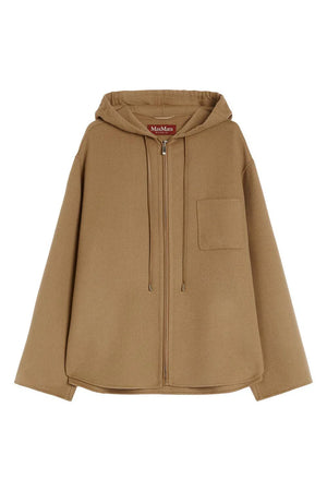 The Mina Coat exemplifies refined tailoring with its luxurious blend of virgin wool, silk, and cashmere. An attached hood with drawstrings and drop shoulders create an effortlessly elegant silhouette, while the front zip closure and tonal leather trim add understated sophistication. A patch chest pocket and side vents at the rounded hem provide both function and contemporary style. Crafted from premium double-cloth fabric with imported construction, this piece is designed for the discerning wardrobe. Dry clean only.