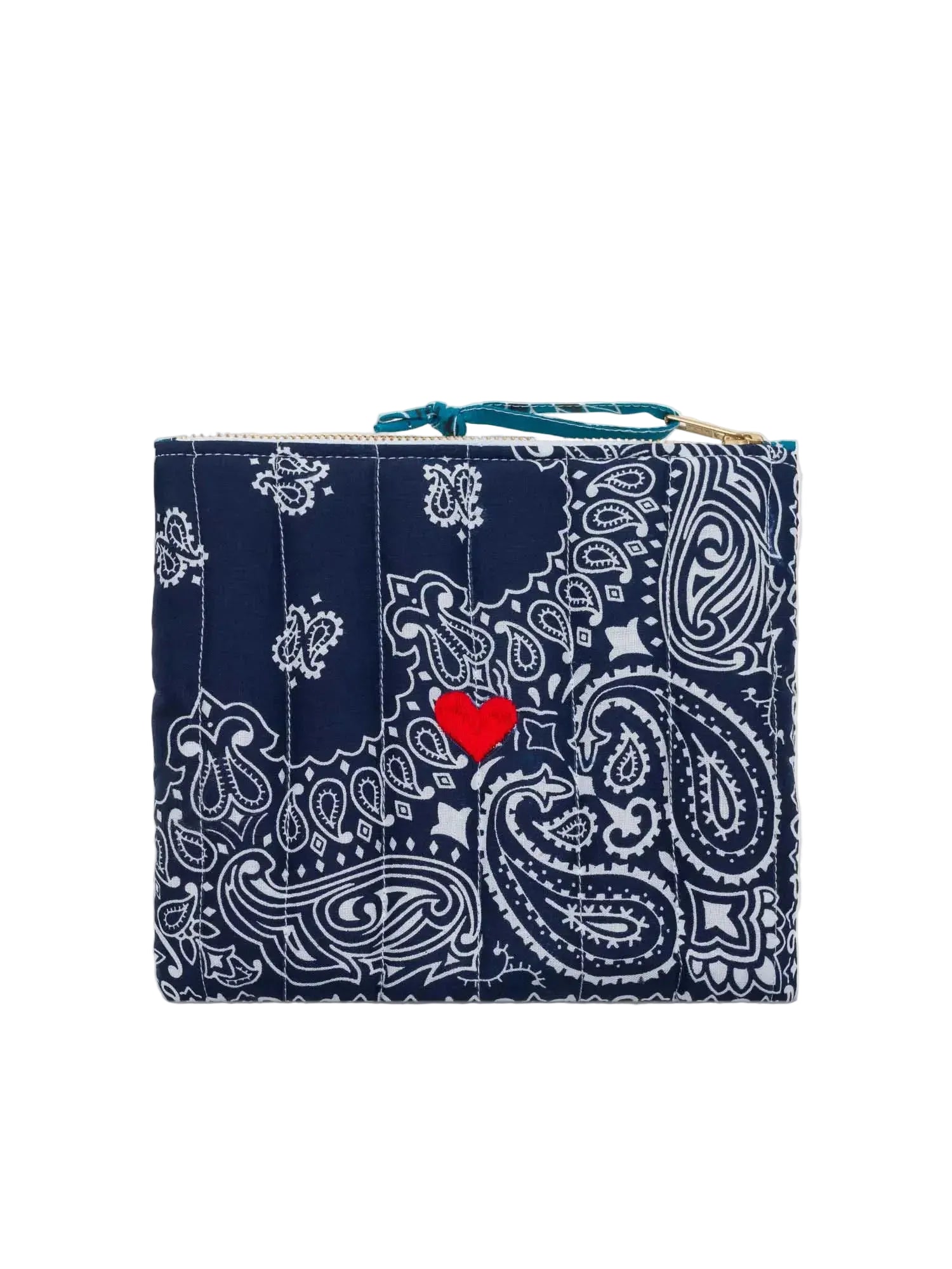 This petite quilted pouch showcases artisanal craftsmanship at its finest. Hand-embroidered in Paris and constructed from 100% cotton fabric made in the USA, it features delicate quilting and a gleaming golden zipper. Measuring 21cm by 18cm, it's an ideal companion for organizing jewelry, cosmetics, or travel essentials. Each piece is individually handcrafted, with natural color variations that celebrate its authentic, made-by-hand heritage.