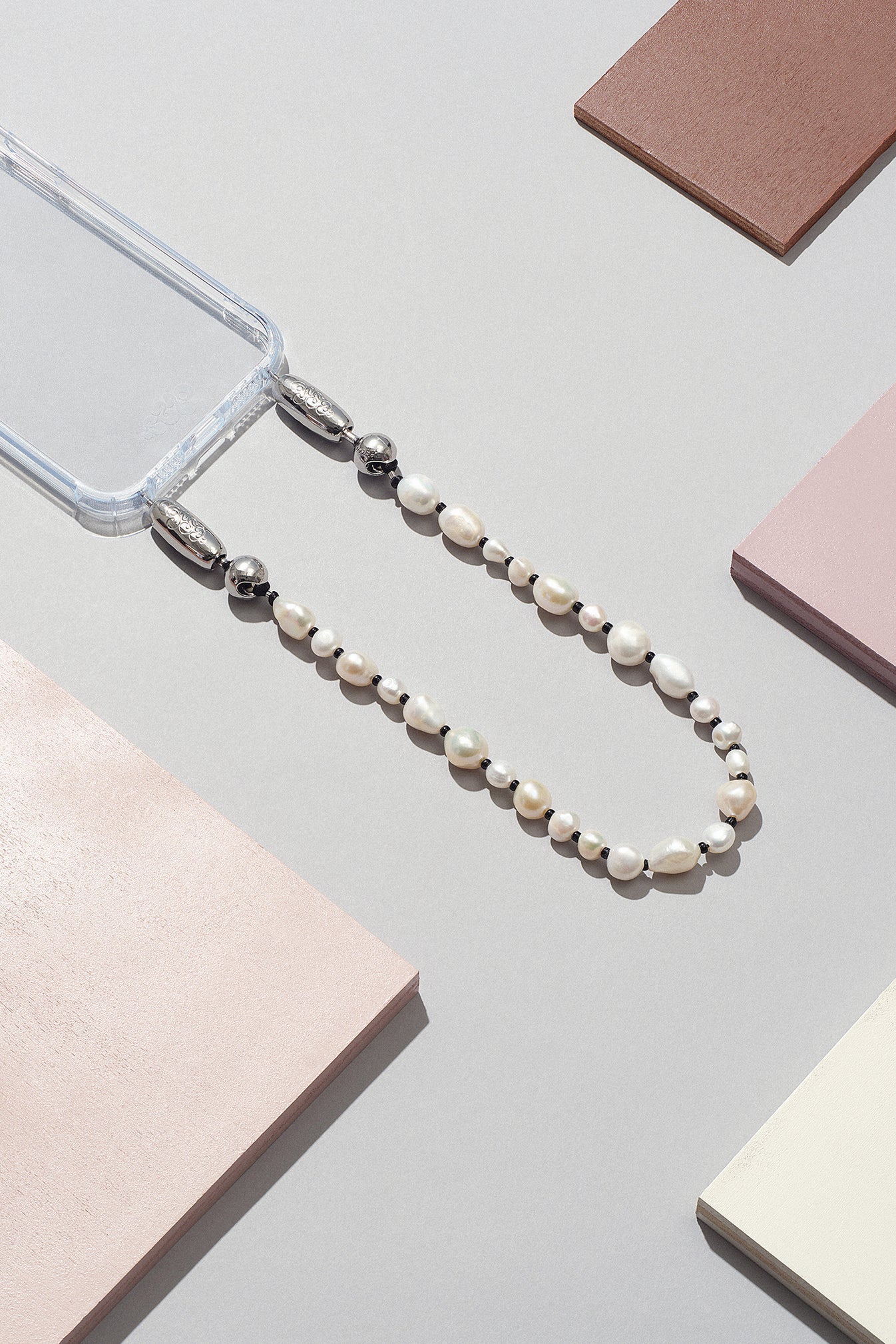 Ossa New York Iphone Chain. Genuine freshwater pearls, With seed bead accents. Strung on braided cord.