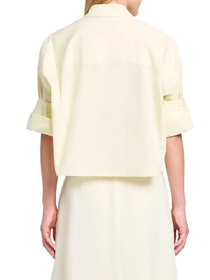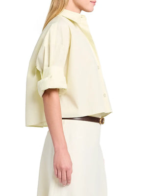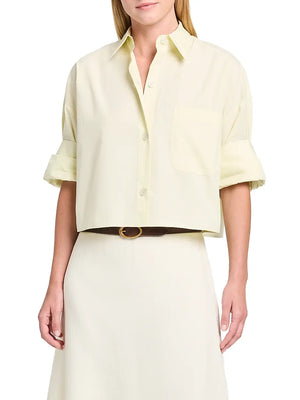 The Next Ex crop shirt from TWP combines effortless style with everyday comfort. Cut from superfine cotton in a relaxed boxy silhouette, it features a spread collar, elbow-length sleeves with button cuffs, and a functional chest patch pocket. The button-front closure makes layering easy. Perfect for casual wear or dressed up with tailored pieces. Machine washable for convenient care.