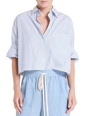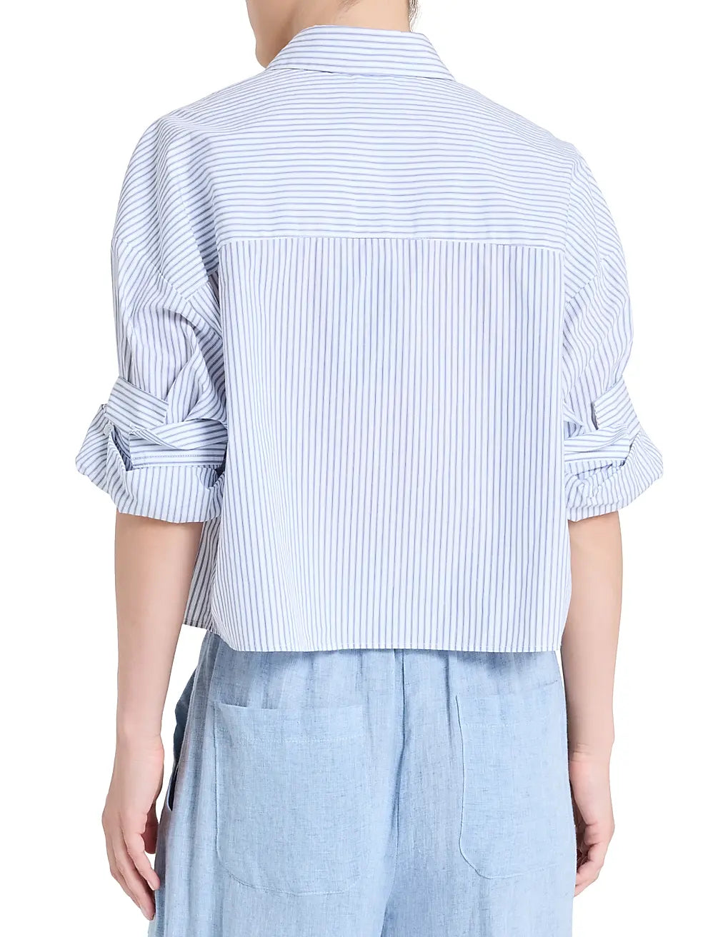 Crafted in the USA from 100% cotton, the Next Ex Shirt offers a refined blend of comfort and style. Featuring a spread collar and front button placket, it presents a polished silhouette. The chest patch pocket and three-quarter sleeves with convertible cuffs add subtle versatility, while the cropped hem brings a contemporary edge. Machine washable for easy care, this shirt is a sophisticated addition to any wardrobe.