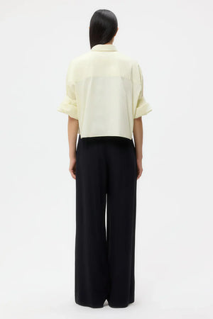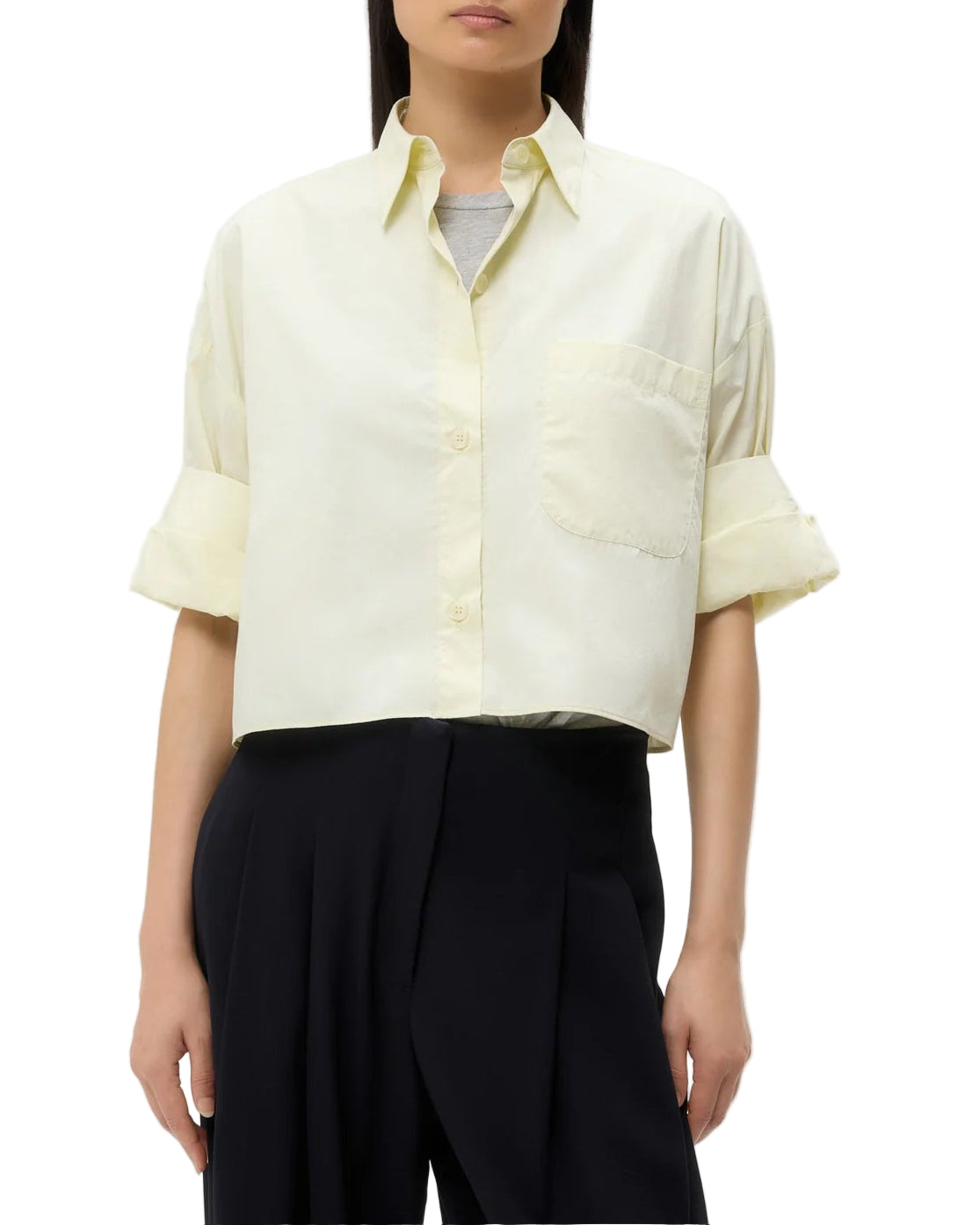 The Next Ex Shirt from TWP combines timeless elegance with modern design, crafted from superfine cotton for exceptional comfort and breathability. Its cropped, boxy silhouette with drop shoulders and a spread collar offers a refined yet relaxed look. Subtle details like the chest patch pocket and short sleeves with double roll button cuffs add sophistication. Perfectly paired with wide-leg trousers or high-rise jeans, this shirt elevates your wardrobe with effortless style.