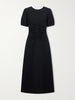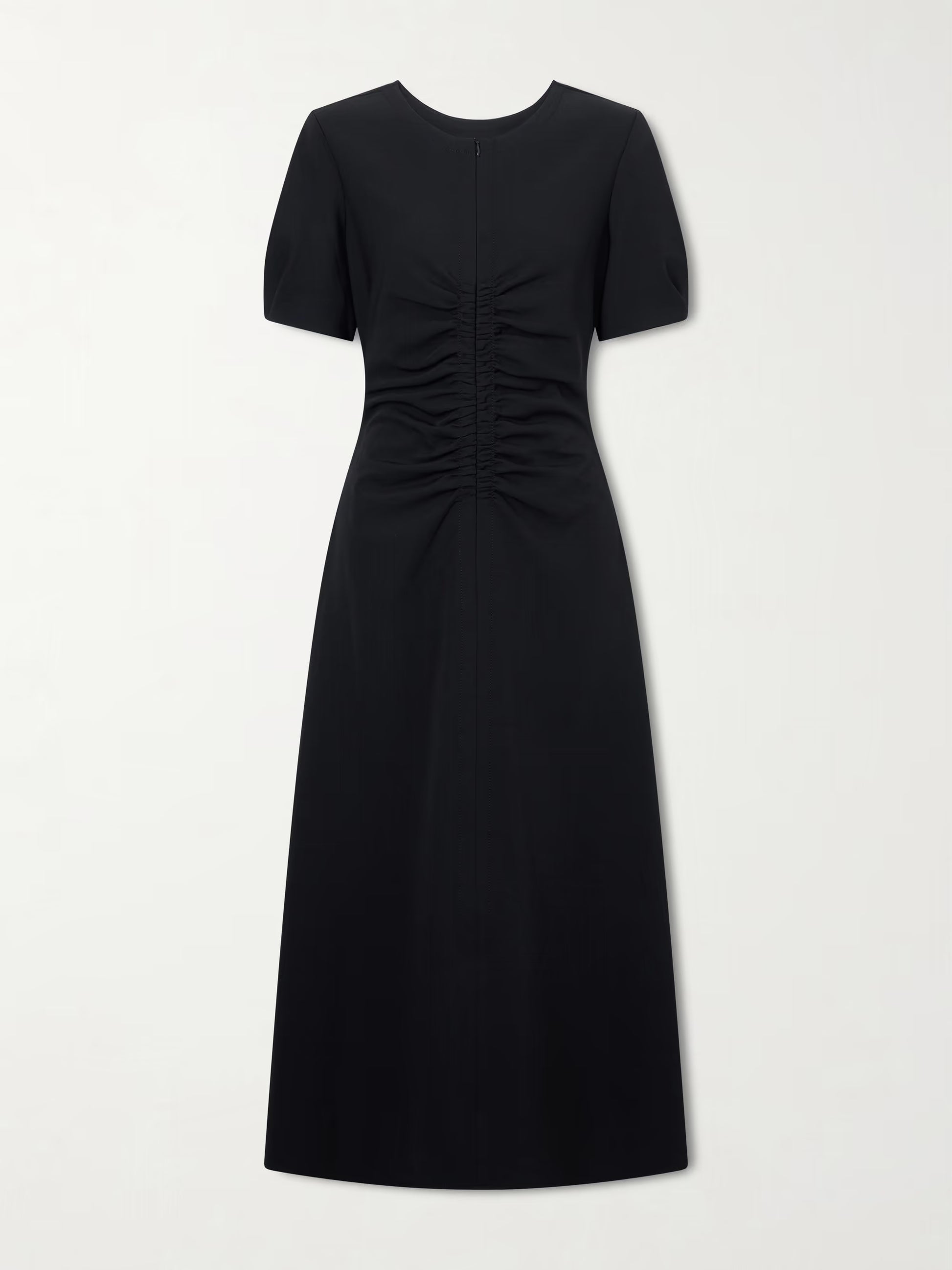 The Noemi dress reimagines timeless elegance with contemporary flair. This fit-and-flare silhouette features sculptural puffed sleeves and strategic ruching that sculpts the bodice with understated artistry. Crafted from recycled stretch-jersey, it moves with you while maintaining its refined shape. The cutout neckline—designed to showcase a delicate pendant—adds an unexpected touch of sophistication. A versatile piece that transitions effortlessly from day to evening.
