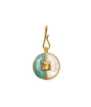 Elevate your style with the Porto Pendant in New Wave, featuring a refined mix of amazonite, mother-of-pearl, and faceted citrine set in gold-plated brass. This 2.75" drop pendant offers a sophisticated, artisanal touch that complements any layered look, making it a timeless addition to your jewelry collection.