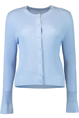 The Max Mara Ribera Cardigan in light blue exemplifies refined elegance with its luxurious blend of 55% silk and 45% wool. This knitted piece drapes beautifully while maintaining its structured silhouette, offering both comfort and sophistication. The silk-wool composition provides a subtle sheen and exceptional warmth, making it an ideal layering piece for elevated everyday styling. Finished with reinforced hems featuring a silk-wool-polyester blend, this cardigan promises durability without compromising on luxury. Hand wash cold to preserve its pristine quality and timeless appeal.