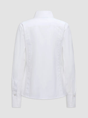 The Ripley Shirt reimagines the timeless button-down with contemporary refinement. Crafted from stretch cotton poplin sourced from responsibly traced origins, this fitted silhouette features a distinctly oversized collar and elegant panel detailing at the princess seams. Long sleeves finish with buttoned cuffs for polished versatility. The fabric's subtle stretch ensures comfort without compromising structure, making this modern classic an essential piece for elevated everyday wear.