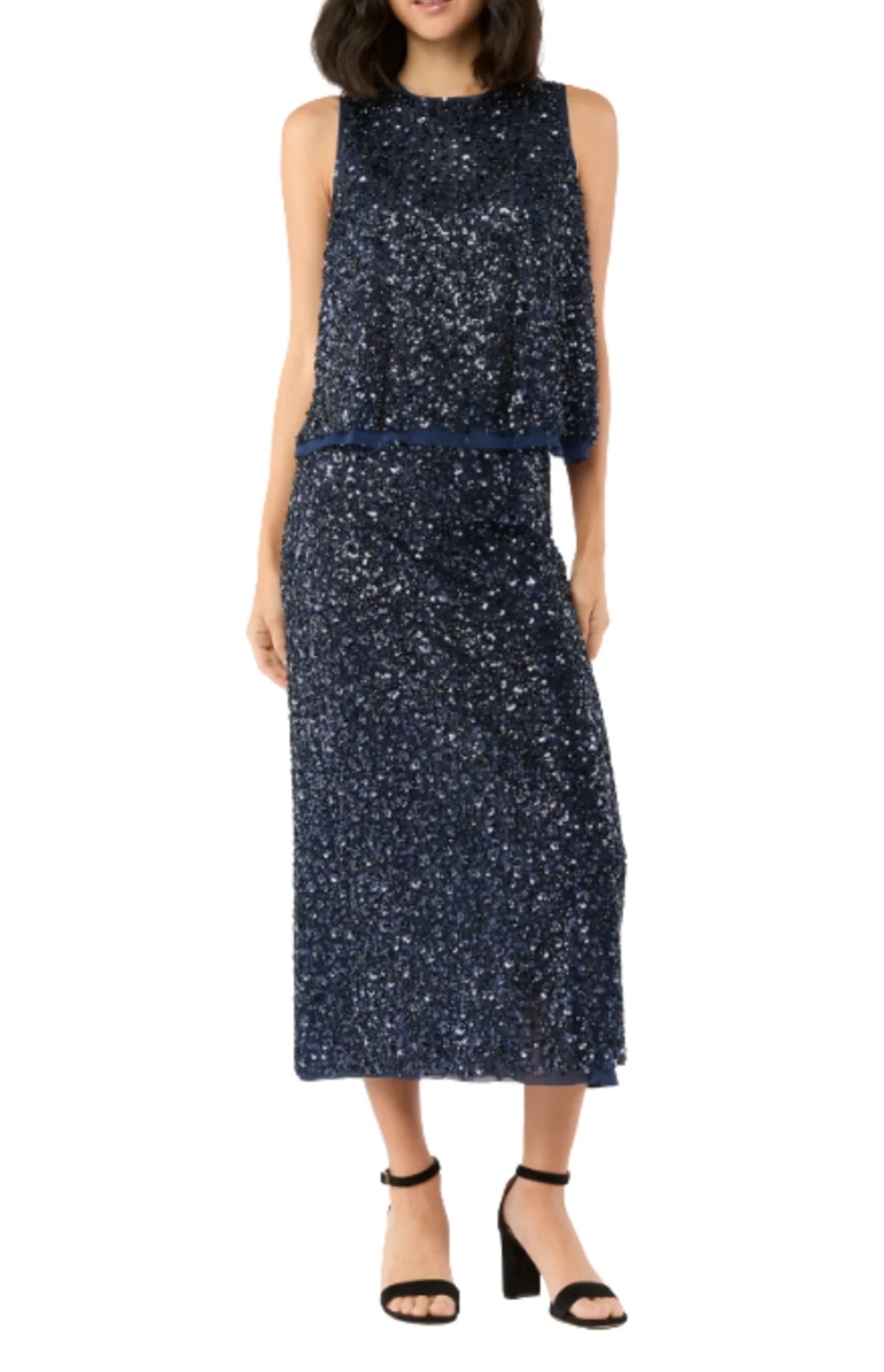 This sophisticated piece effortlessly blends timeless elegance with a touch of festive shimmer, perfect for both day-to-night transitions and special occasions. Crafted to flatter, it offers a polished silhouette that complements your style with understated luxury.