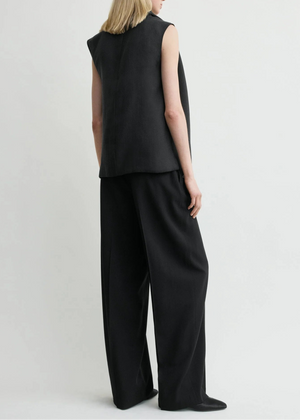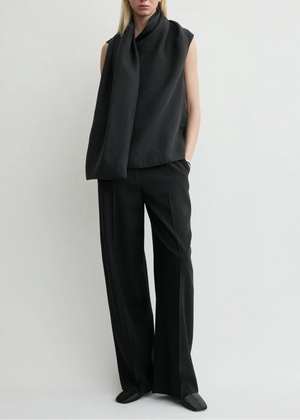 Sleeveless blouse in a diaphanous organza that enhances the graceful movement of the attached scarf.