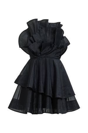 The Selestia Mini Dress commands attention with its architectural design. A striking sculptural neckline frames the silhouette, while layered asymmetric ruffles create dynamic movement and visual intrigue. An external metal back zip with sculptural puller serves as both functional closure and statement detail. Fully lined for comfort and constructed from 100% polyester, this dress transitions effortlessly from evening events to upscale occasions. Dry clean only.