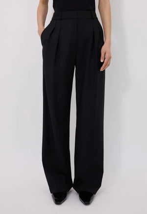 Crafted from premium virgin wool with an exceptionally soft hand, these straight-leg pants deliver refined elegance with practical comfort. The generous, pleated waist accommodates natural movement while maintaining a polished silhouette. Thoughtfully designed with two oblique side pockets and two mock back welt pockets for functional style, they feature a sophisticated zipped fastening paired with a buttoned waistband. Pair with the matching Donau jacket to complete a cohesive, elevated ensemble.