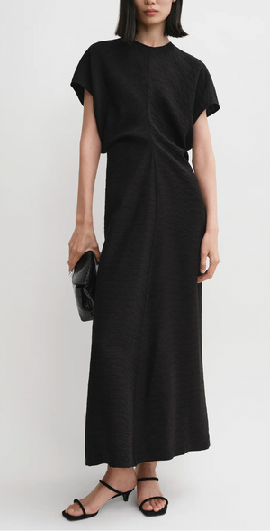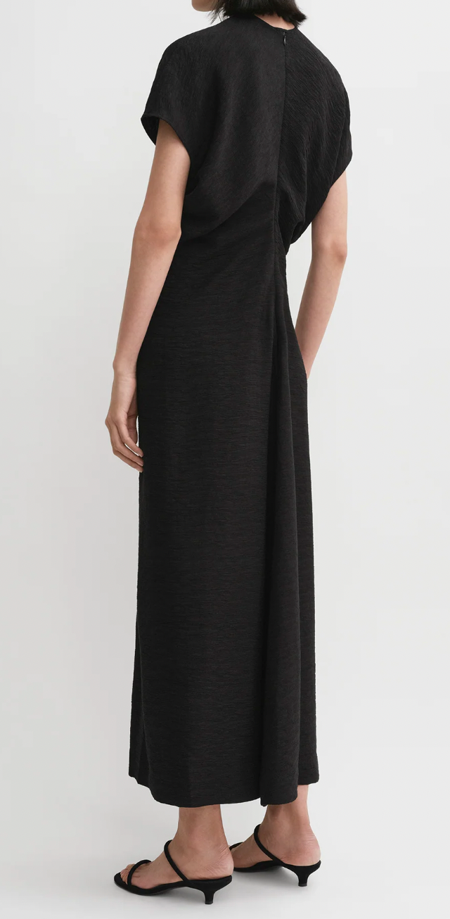 This Toteme dress features a black concealed back zipper and is crafted from a blend of 92% viscose and 8% polyamide. Designed for expert care, it requires dry cleaning to maintain its quality and fit.