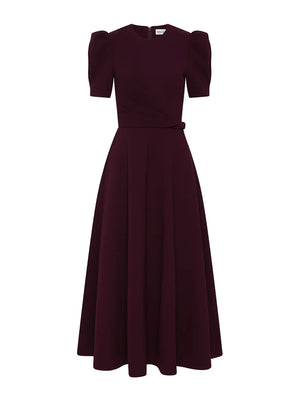 The Syrah Midi Dress by Rebecca Vallance offers a refined blend of romance and elegance with its softly puffed sleeves and gracefully flared skirt. Expertly crafted for a polished look, this dress transitions seamlessly from day to night. Pair it with strappy heels and a sculptural clutch to elevate your style with timeless sophistication.
