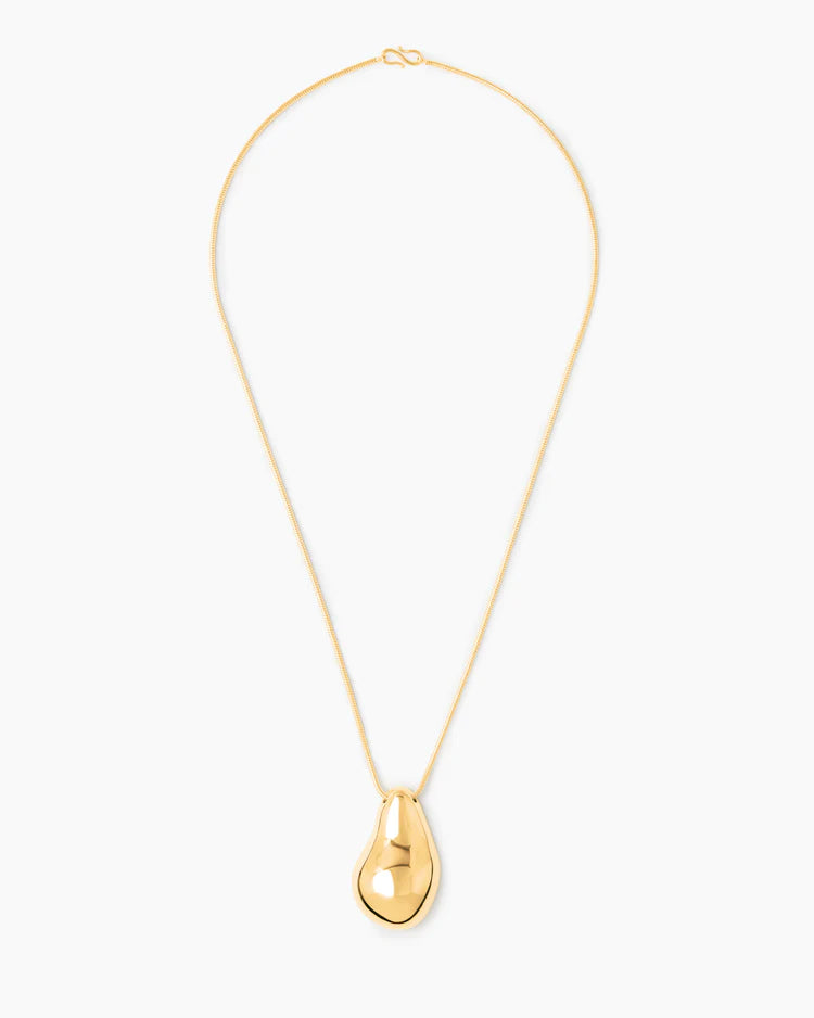 The Betty Necklace embodies understated luxury with a curved pendant that moves gracefully with you. It is designed to be as adaptable as your summer plans, wear it around your neck, style it as an anklet, or let it accompany you as a bag charm. The Betty Necklace has a delicate chain crafted from 18 carat gold-plated silver.