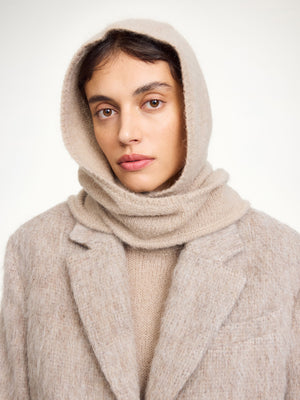 The Tianne Hood seamlessly transitions from cozy neckwear to elegant headpiece, thanks to its ingenious split construction. Crafted from a sumptuous blend of wool and mohair, this versatile layer delivers luxurious softness against your skin while complementing any coat or sweater in your wardrobe. A refined accessory that effortlessly elevates your cold-weather style.
