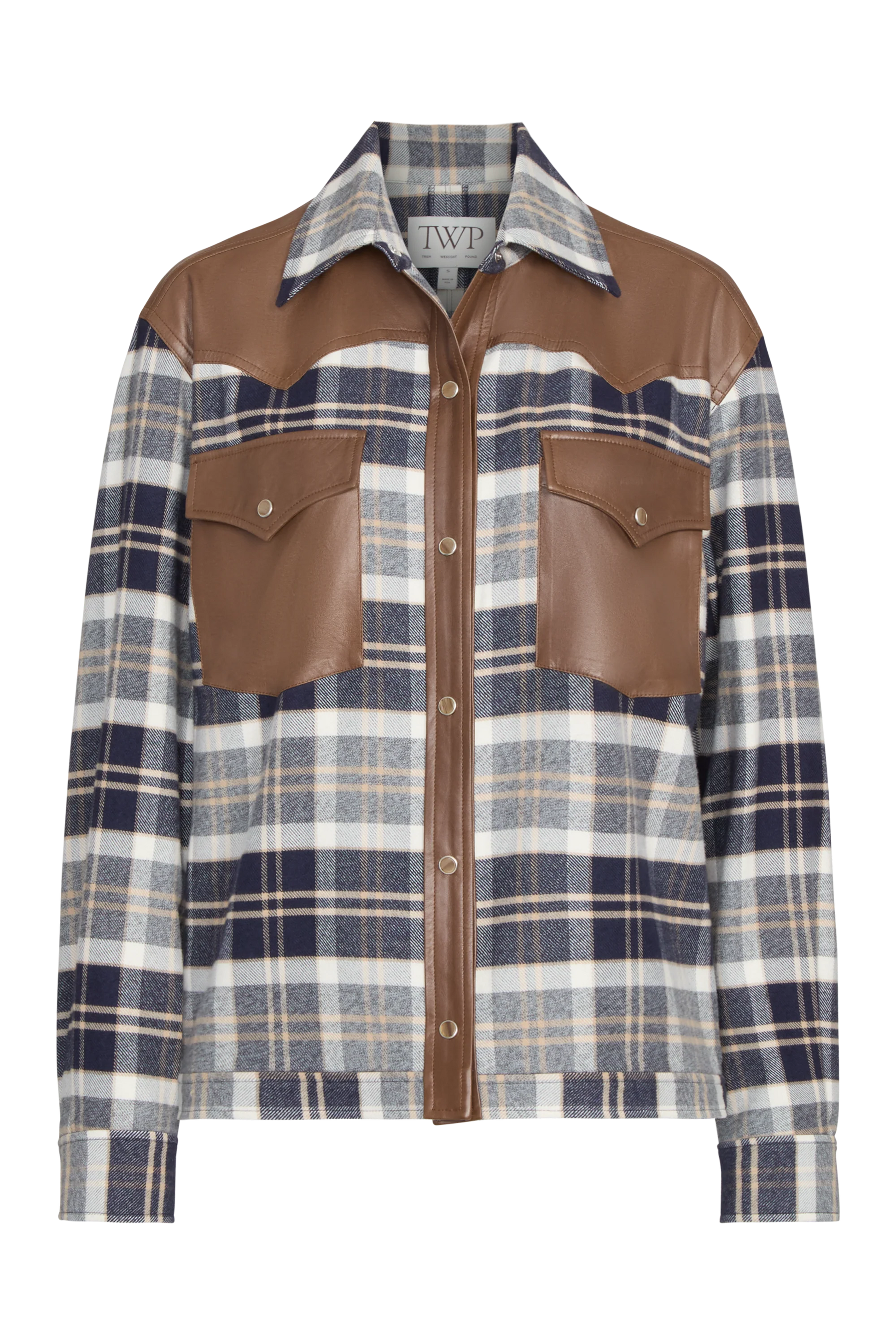 Experience refined Western style with the Waylon Shirt, where rich leather accents complement the soft brushed cotton flannel. Featuring a distinctive peaked yoke and pearly snaps, this shirt balances rugged charm with polished detail. Its spread collar, snap cuffs, and chest flap pockets provide both function and elegance. Crafted from 100% cotton and made in the USA, it offers comfort and quality that lasts. Designed for those who appreciate sophisticated casual wear, this shirt elevates your everyday wardrobe effortlessly. Dry clean recommended to maintain its premium look and feel.
