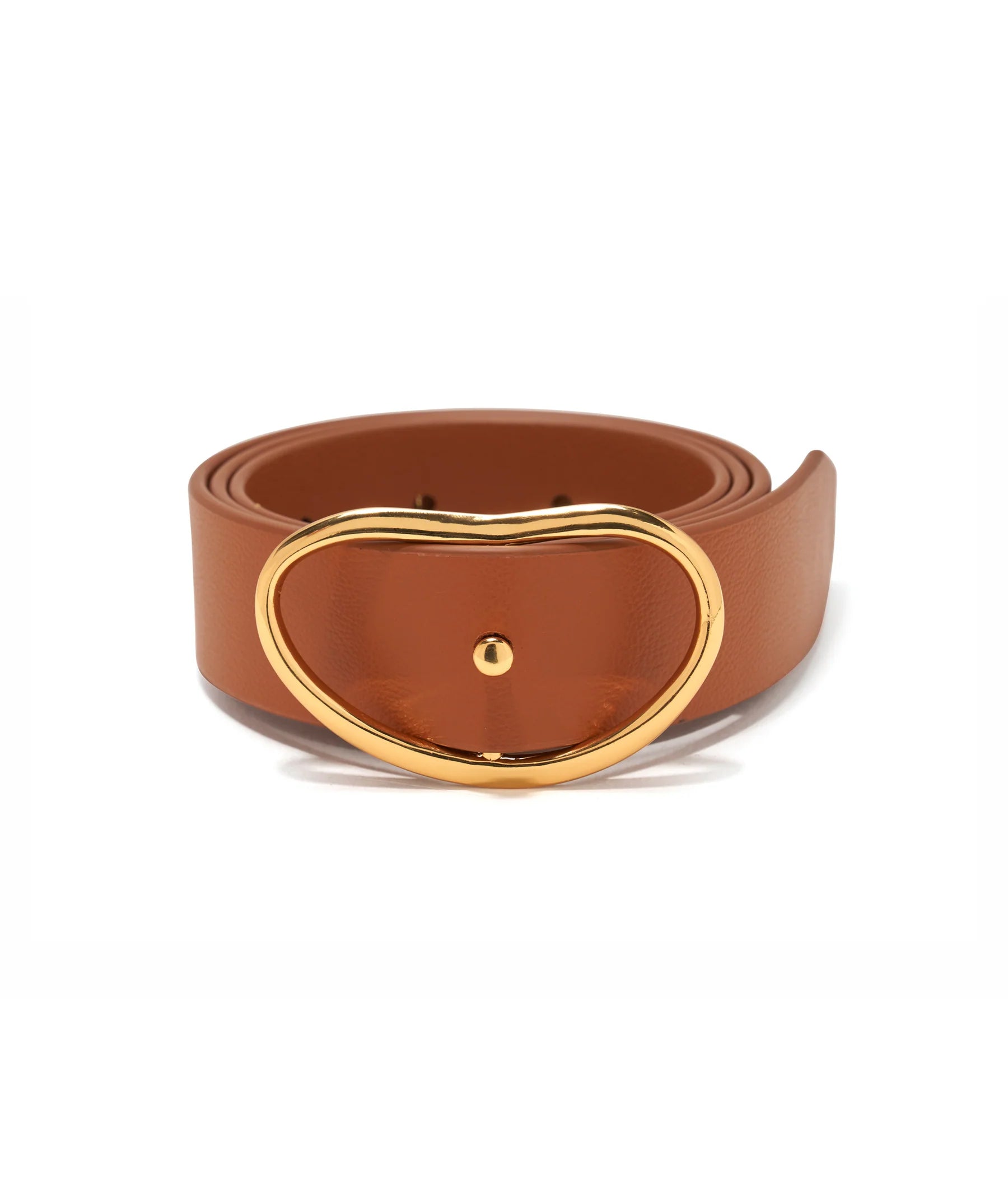 Lizzie Fortunato's signature Georgia crafted in the chicest tan leather and finished with gold-plated kidney buckle. Your wardrobe workhorse, in a silhouette that will forever be in fashion.