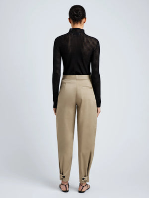 The Zelle Top exemplifies refined minimalism with its sophisticated black semi-sheer check pattern and mock neckline. Crafted from 100% extrafine merino wool, this Proenza Schouler White Label piece features long sleeves and a straight hem that skims the body with a slim silhouette. The luxurious fabric offers natural temperature regulation and breathability, making it an elegant layering essential for the modern wardrobe.